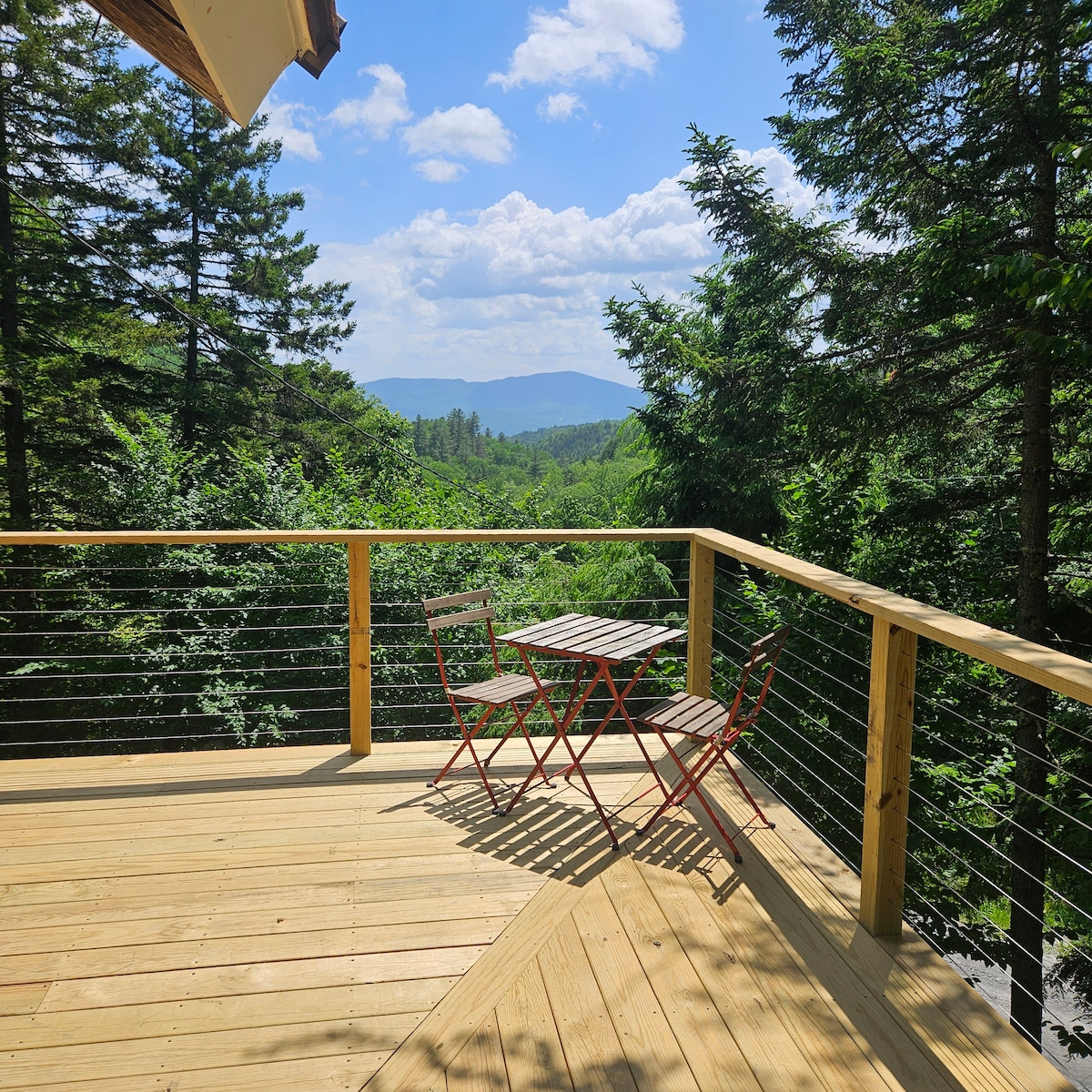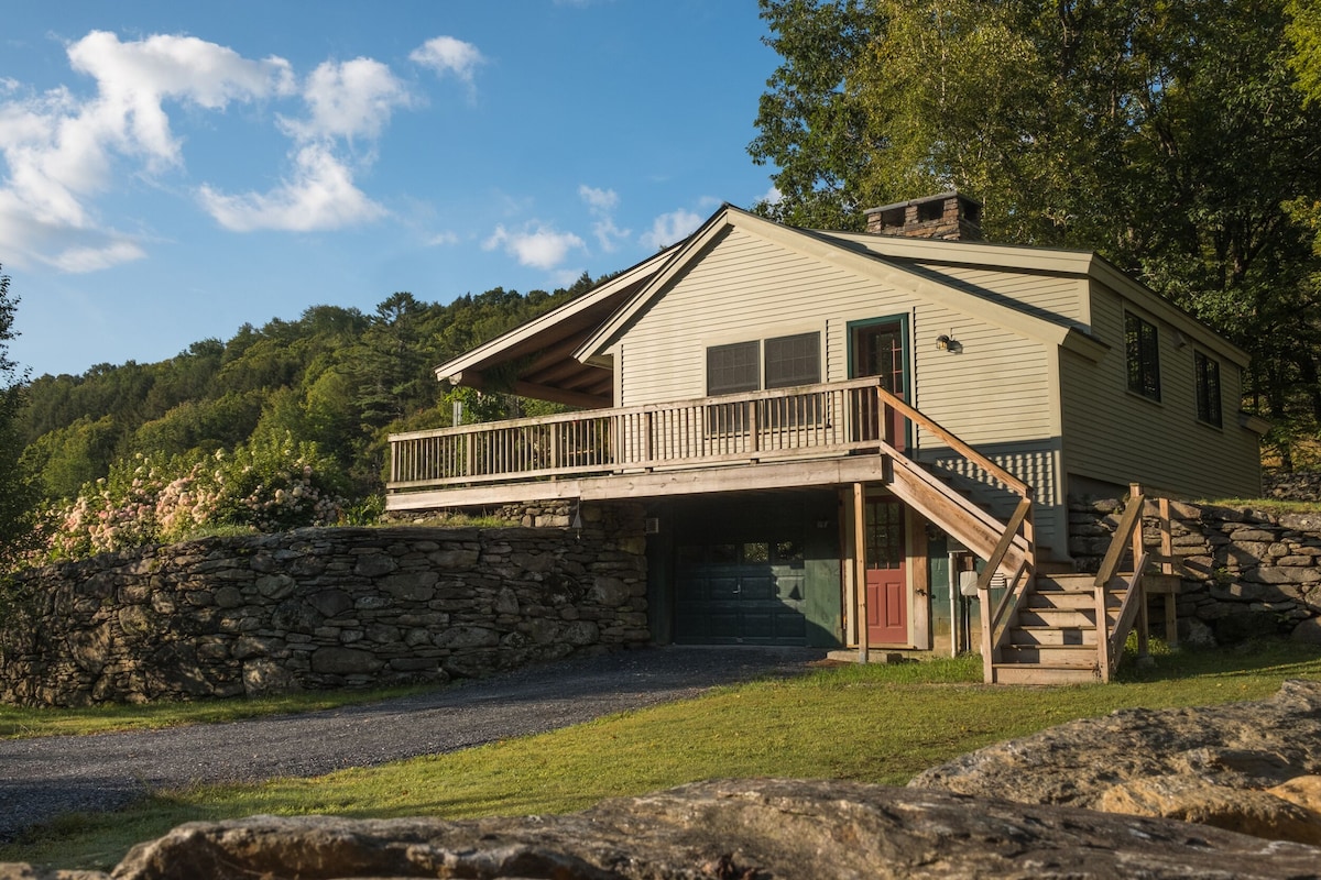 3 night minimum, unless prior approval, self checkin. Work remotely. This romantic, elegant, private getaway for two (or one) in our "Treehouse" with sleeping loft, full kitchen & bathroom, screened porch, deck, sauna, WiFi, BBQ grill, etc. Overlooking pasture & mountains. Enjoy the property with 3 miles hiking/snowshoe trails. Guest house on 160 acre private horse farm. Lots to do at nearby ski areas, shopping, hiking, biking, theater in summer. Or just relax. Discount for longer stays.