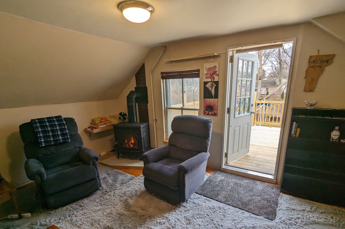 Take it easy at this cozy studio which is nestled in the hills of the beautiful Duxbury Vermont. Offered year round so that our guests can enjoy all that Vermont has to offer such as nearby skiing, changing leaves, hiking and so much more! Guests will enjoy their own private space with access to many amenities such as a full kitchen, private entrance, a queen bed, free WIFI and so much more! So grab a mug and sit back and relax next to the gas fireplace! You will want to return every season!