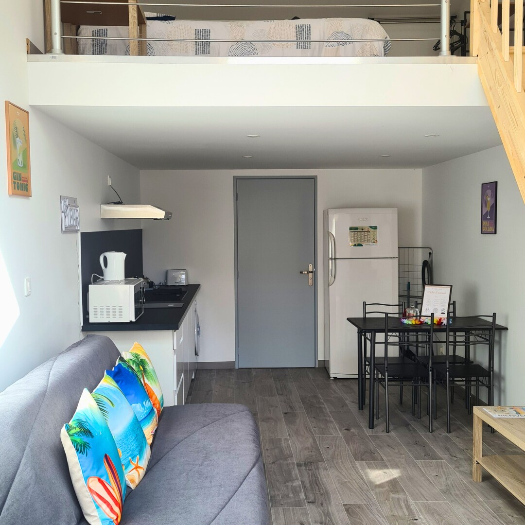 Détendez-vous dans ce logement calme et élégant. Maisonnette neuve de plain-pied de standing située dans une impasse au calme et accessible à pied aux premières commodités (boulangerie, supérette, pharmacie, tabac-presse, pizzeria, coiffeur). Ce logement (type studio) idéale pour deux personnes comprend une pièce principale avec canapé convertible de très bonne qualité (couchage 140x190). Une cuisine équipée et coin repas avec accès sur une terrasse. Une salle d’eau avec un toilette. Un parking