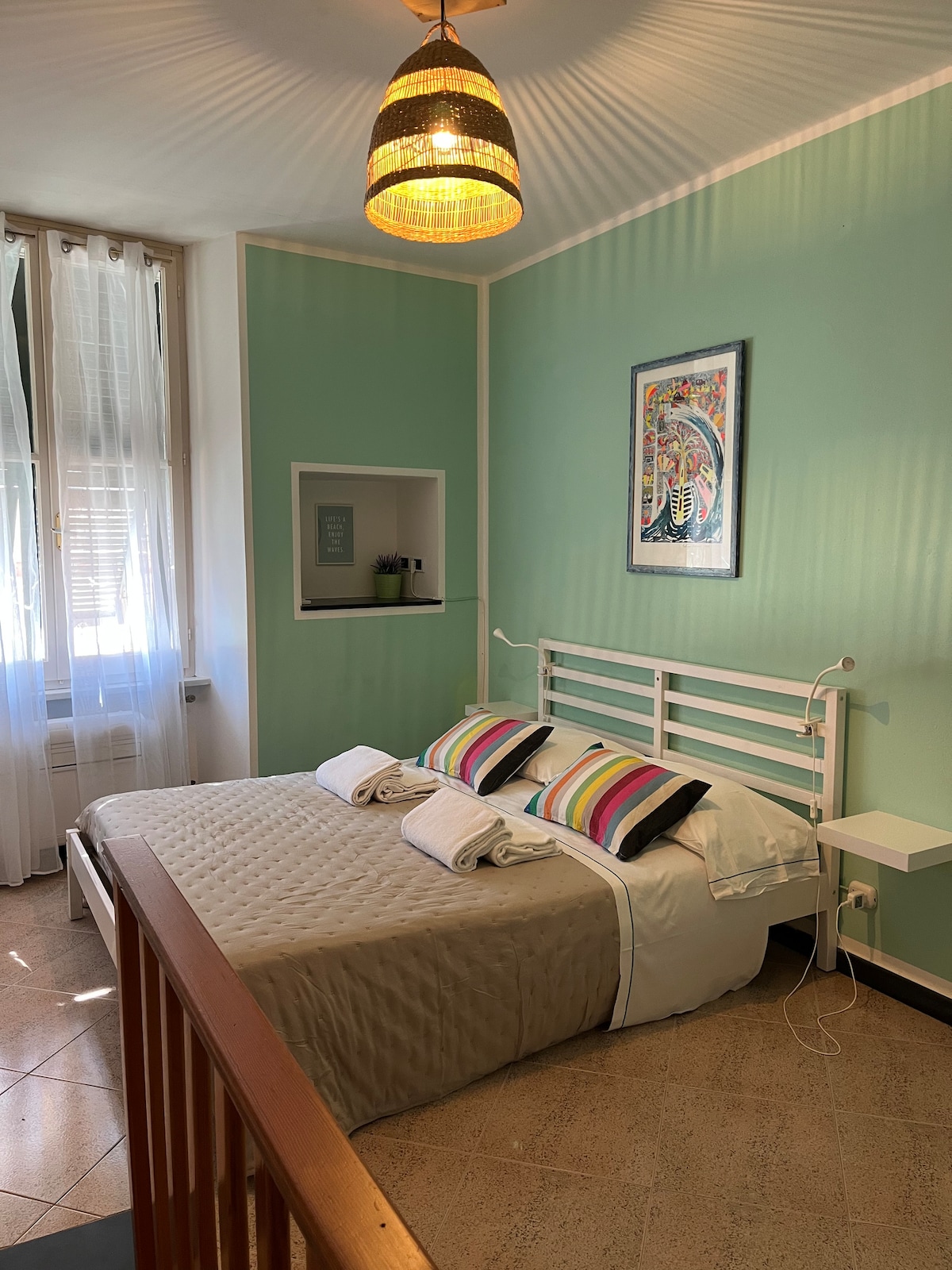 L’appartamento è un rifugio luminoso e accogliente,ideale per coppie,famiglie o amici che vogliono vivere le 5 Terre con calma e comfort. All’interno troverete una cucina moderna e spaziosa attrezzata per preparare colazioni ,cene o aperitivi vista mare sulla terrazza privata con lettini prendi sole per il relax dal rientro delle vostre attività. 1 camera matrimoniale fornita di biancheria con un lettino per bambini In sala trovere un divano letto per 2 persone