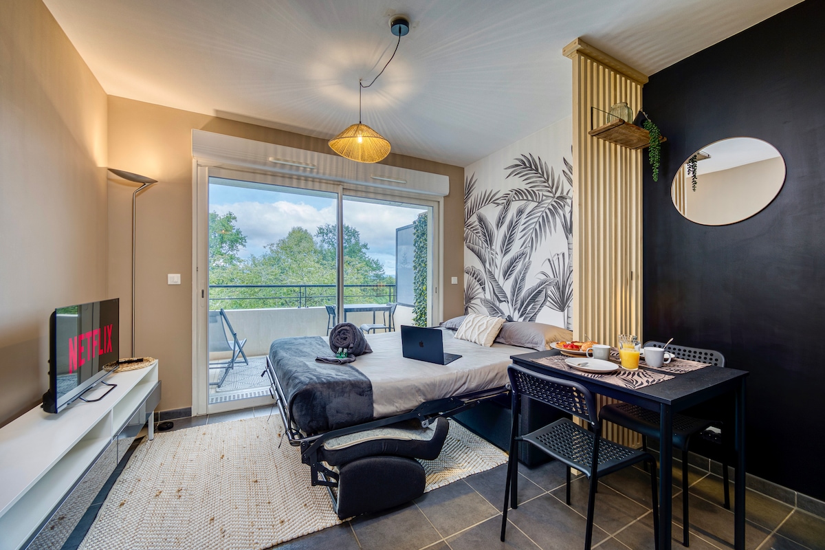 Parfaitement situé à 5 min de la douane Suisse, notre studio moderne de 25 m2 est entièrement rénové en 2024, meublé et équipé soigneusement avec goût. Idéal pour une période d'essai à Genève, voyage d’affaire, il est également confortable pour les visites touristiques et le ski. La location stratégique : -5 min de la frontière en voiture, 15-20 min de Genève et 30 min d'Annecy, - bus jusqu'au centre de Genève (30 min), autoroute, un aquaparc, ski, gare, centre ville... -Supermarché en face