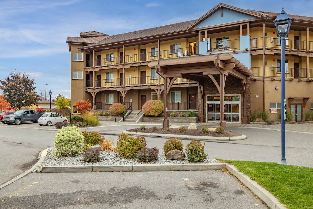Your semi-rural area REQUIRES A VEHICLE! (There's lots to see and do!) BONUS...Your inside parking is *FREE!* Enjoy LAKE & MOUNTAIN VIEWS and *FREE* AMENITIES like.. *4-SEASON HOT TUB *OUTDOOR POOL *GYM *PUTTING GREEN *CHESS *BASKETBALL *TENNIS *BADMINTON *PICKLEBALL *PING PONG *BILLIARDS You'll be staying at Copper Sky Resort-style Condos located in the centre of the Okanagan Valley. A vehicle is a MUST so you can really enjoy the Okanagan! Your hosts, Robert & Sandi WELCOME YOU!