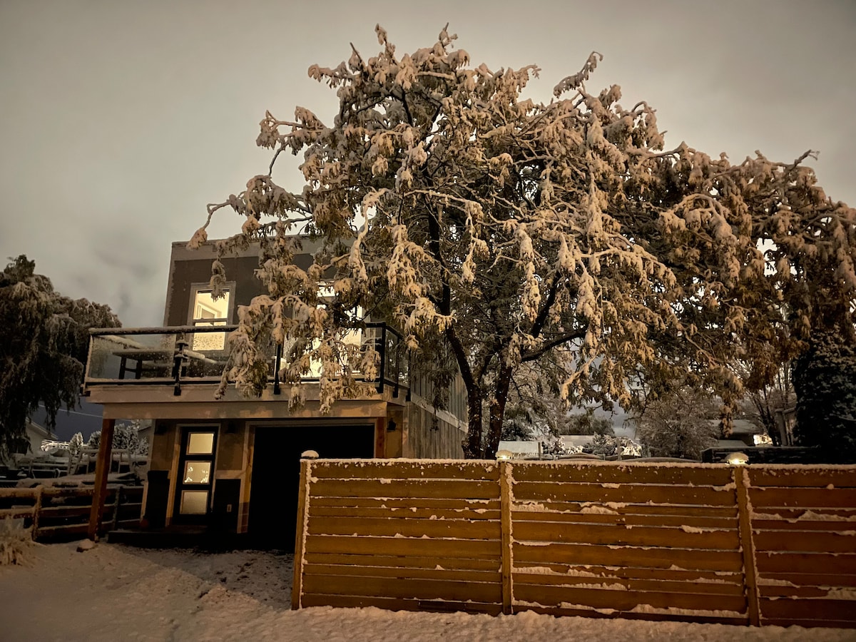 Clean. Quiet. Private. Watch the sunrise over the mountains each morning from the large deck of this brand new carriage house. A full kitchen with large island for convenient meal prep. Cozy living space with fireplace, blankets and Netflix when it comes time to chillax. Fabulous glass shower. Comfortable queen bed plus a pull out sofa. Walk to playgrounds. Safe and central rural location. Plenty of street parking. Garage parking available for smaller vehicles. (Access from inside).