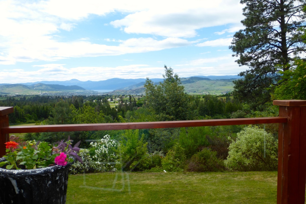 Spacious, Clean, excellent reviews, No cleaning fee! A HUGE full walkout suite with a million dollar view of two lakes, the city and the valley. We live on the upper level. You enjoy the walk-out level to a beautiful yard and THE VIEW. This is the ideal stop between Calgary and Vancouver. Close to wineries, golf courses, bike trails, beaches and more. 15 minutes to world class downhill and cross country ski resort. Quiet and very CLEAN!