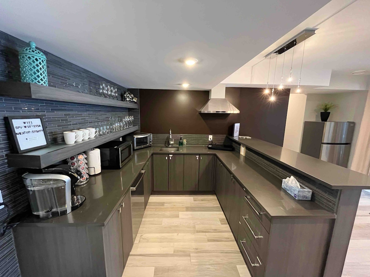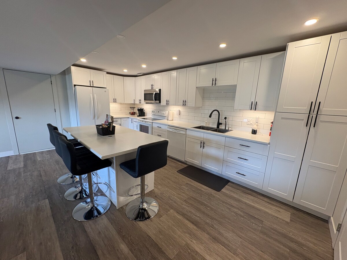 Modern ground level daylight basement suite with fully stocked large kitchen. A/C for the summer, furnace for the winter with electric fireplace, and additional heaters in each bedroom to make sure you are always comfortable. Well lit space with cellular blinds. USB port on each lamp for convenience. Fast 100 mbps internet and smart tv with cable access or streaming services. Kitchen has full sized appliances, water filter system, and an ice maker in the fridge.