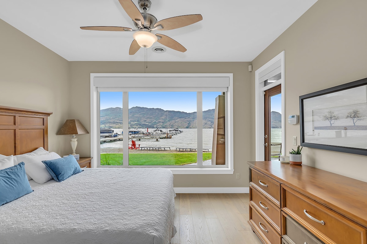 Welcome to Barona Beach! BARONA BEACH IS ONE OF THE FEW PROPERTIES NOT AFFECTED BY THE SHORT TERM RENTAL BAN IN BC. Located on 600’ of sandy beach and surrounded by orchards and nearby wineries. Relax and unwind in this private and quiet condo. Take advantage of the numerous amenities such as the heated pool, hot tub, well equipped gym or a treatment at the onsite spa. The unit is on the main floor and is fully stocked. You will enjoy the entire condo that overlooks the canal and lake.