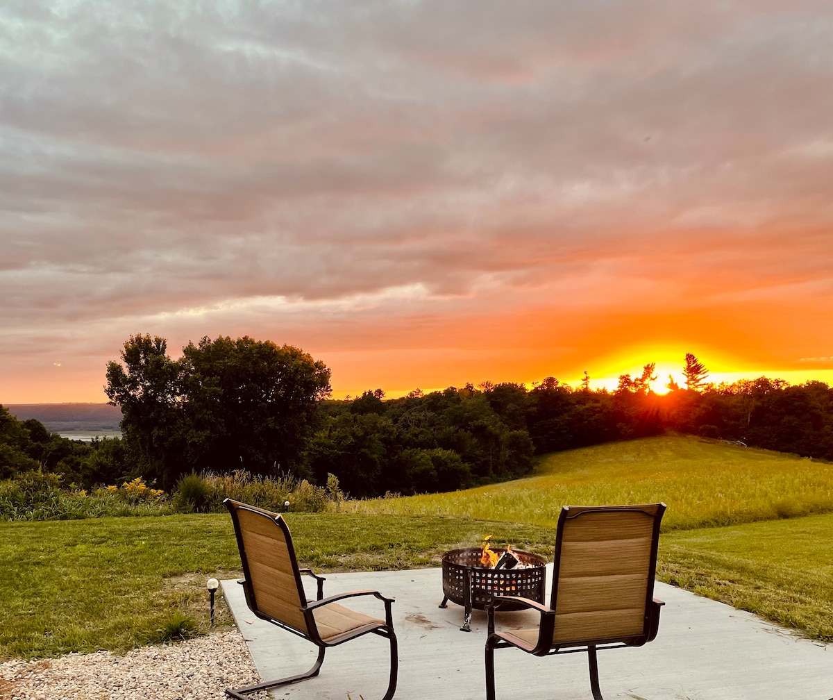 Your peaceful oasis awaits. Unwind as you enjoy stunning views of the Mississippi River Valley from atop your secluded bluff top perch. Relax in the hot tub & take in the scenery as eagles soar below. Open concept stylish space with ample room for gathering with famiily and friends. Sip coffee on the open deck as you watch river barges or enjoy a campfire under the stars. Easy access to the best the Driftless has to offer. Nearby public landing for boating, fishing, kayak, or canoeing!