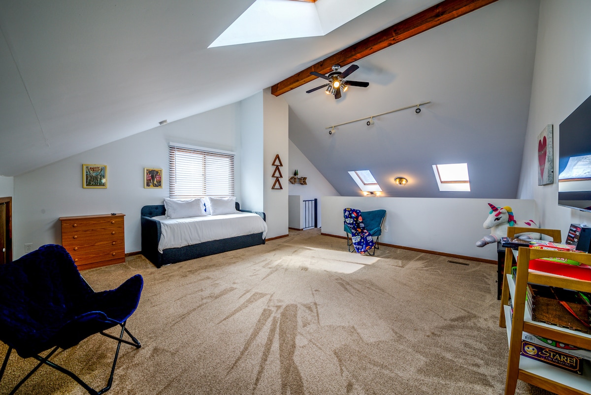 全新!超级舒适,斜坡边阁楼,适合家庭入住