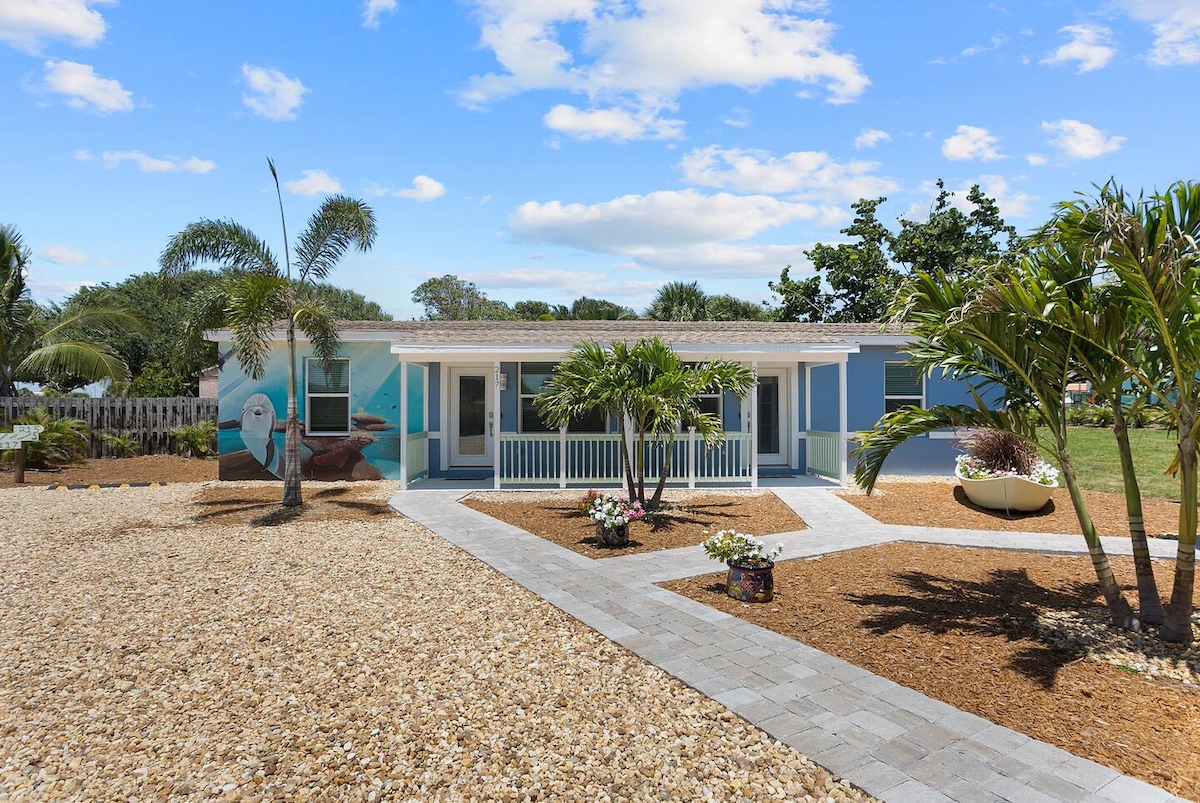 ☀️ Perfect for Your Family Beach Week Welcome to Town Center Cottages — your cozy, walk-to-everything beach retreat in the heart of Cocoa Beach. Whether you're watching a rocket launch from the sand, playing in the surf with our free beach gear, or grilling dinner after a day at Kennedy Space Center, this is the place where your family memories are made What you'll Love ❤️Fenced Yard! ❤️2 comfy bedrooms ❤️Smart TV with Hulu ❤️Free WiFi & Parking ❤️Beach chairs, wagon, umbrella, cooler