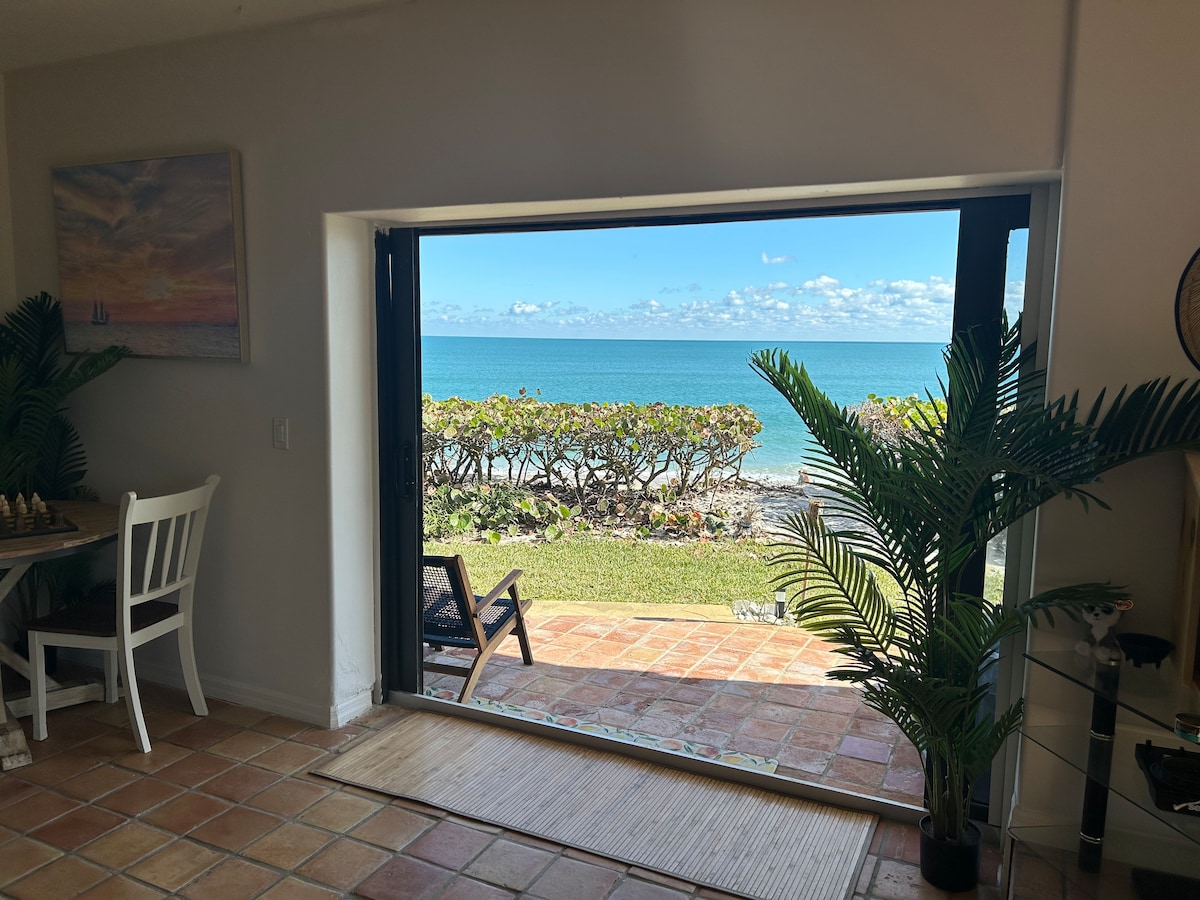 Come experience the beauty and charm of Hutchinson Island Jensen Beach where you can relax & enjoy the ocean breeze on two private patios. You'll be steps from the beach, the heated pool, sundecks & grills. Enjoy eats & drinks at the on-site restaurant or cook in our well-equipped kitchen. Relax in king & double beds or a queen sofa bed, play games, watch cable/stream TV, or grab the beach or pickleball gear & head out for some fun in the sun! Refresh in the large soaker tub when you’re done!