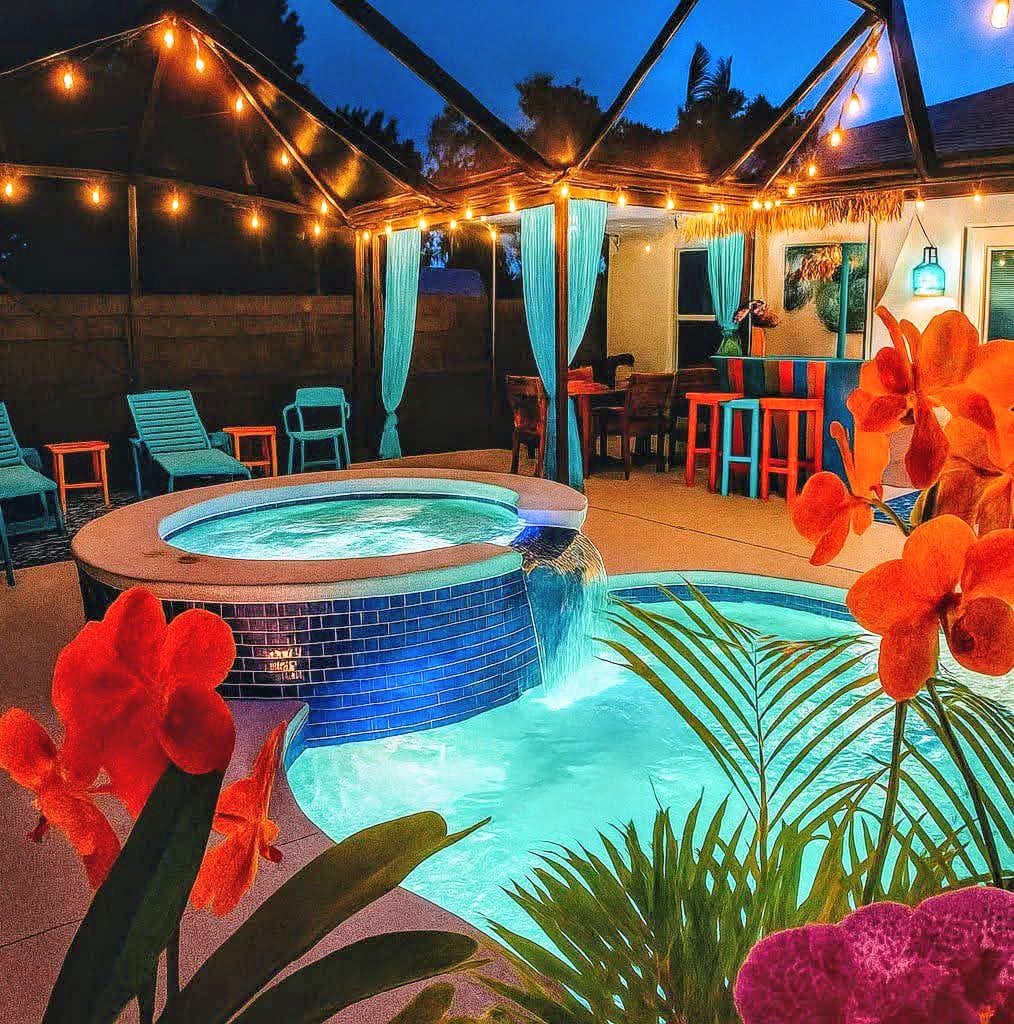 平均评分 4.92 分(满分 5 分),共 185 条评价热带绿洲度假屋-恒温泳池、池塘和庭院