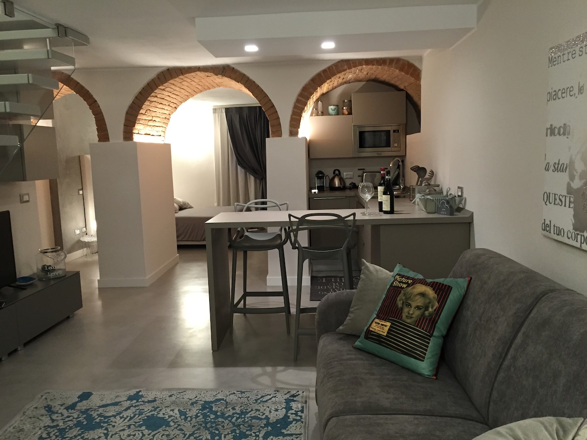 "Hidden Corner #1" is a lofty style studio located on the ground floor of our lovely newly and thoroughly refurbished building in the picturesque central area of Ponte Pietra. Refurbishment and entire interior decoration were completed in Aug 2015.