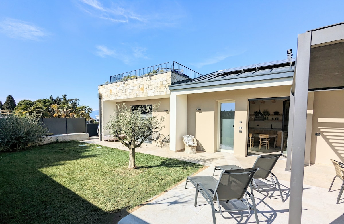 Nuova e moderna villetta singola di 65 mq circondata da uno spazioso giardino con magnifica vista panoramica sul Lago di Garda. A disposizione degli ospiti una piscina a sfioro 4*8m vista lago, pronta da Maggio 2025, un barbecue per favolose grigliate e un garage. La camera matrimoniale è affacciata sul giardino vista lago. Si trova in posizione collinare ed è consigliata a chi cerca la tranquillità in mezzo al verde degli olivi ed una strepitosa vista lago a pochi passi da Bardolino.