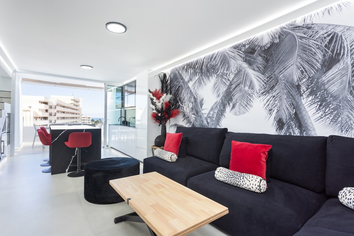 We have the perfect holiday spot for you!! Located in the Costa Adeje, San Eugenio area is this chic and stylish 2 bedroom villa with a private pool. There is an open-plan kitchen-living área that boasts a very cozy atmosphere. You can enjoy delicious meals on the breakfast bar and also get comfortable on the sofa in front of the 46 inches Smart TV. The exterior of the property is situated in a slightly elevated position which results in sea views from the terrace. Family discount available.