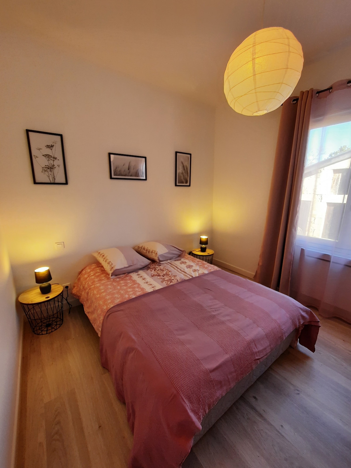 Appartement en rez de jardin , climatisé, totalement indépendant (arrivée autonome) et comprend une grande chambre : lit King size avec télé 40", une sdb avec wc, cuisine ouverte sur un salon avec un canapé convertible1,60m de bonne qualité à mémoire de forme. 1Baie vitrée vue sur un extérieur . Le logement dispose de 2 emplacements parking dans une cour fermée (vidéo). La propriété possède un étang où il est possible de se promener et de voir🦆🐿️ écureuils nous fournissons draps serviettes