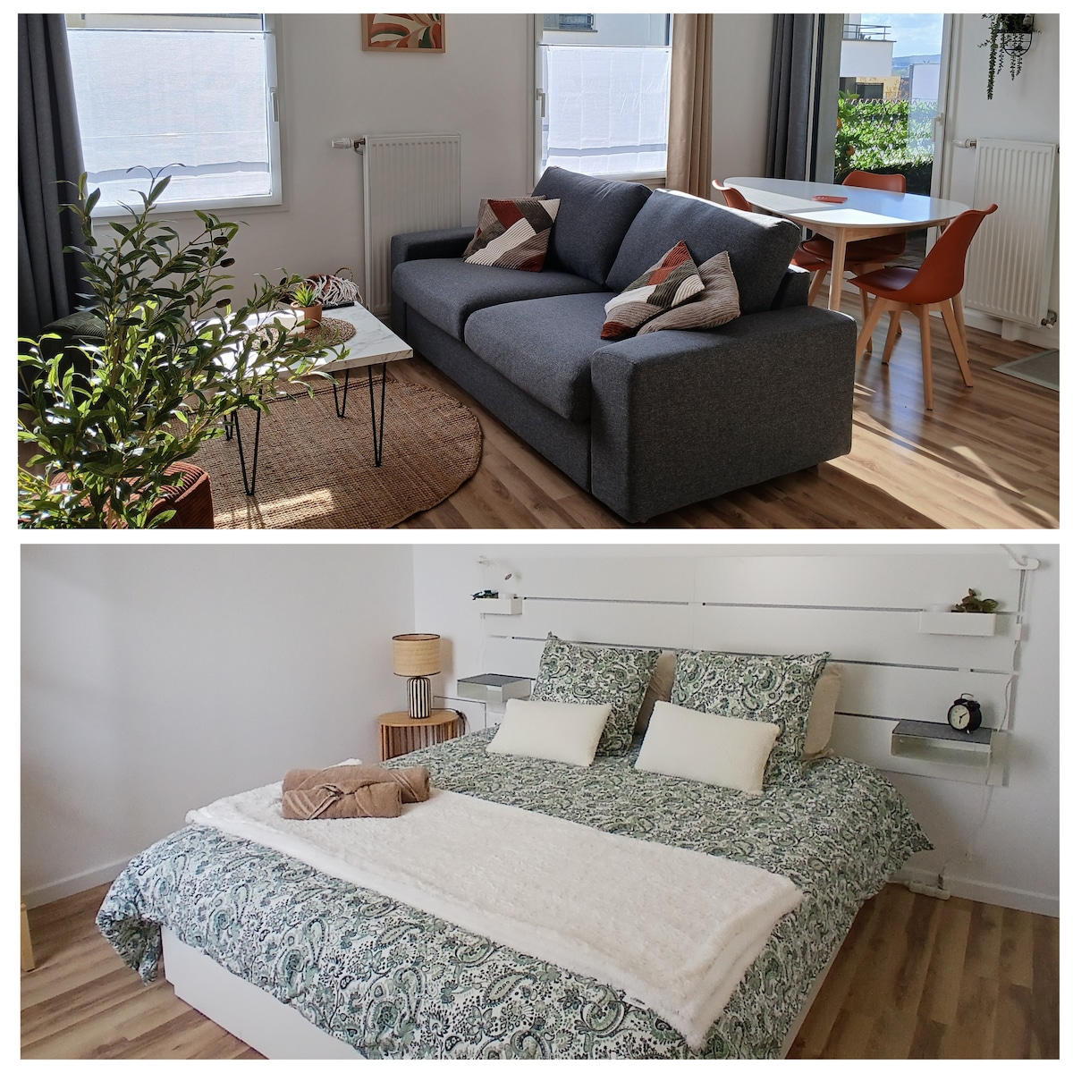 This unique, modern, and fully equipped house boasts its own distinct style. Located just a ten-minute walk from the metro, offering easy access to Paris (15 mins), Orly airport (20 mins), and Disneyland (30 mins). With 2 bedrooms, kitchen, living room, dining area, and 2 bathrooms, it's perfect for a comfortable stay. Additional amenities include AC, Wifi/Netflix, Coffee/Tea. For unforgettable moments, enjoy the outdoor jacuzzi spa, BBQ, and a beautiful terrace surrounded by greenery.