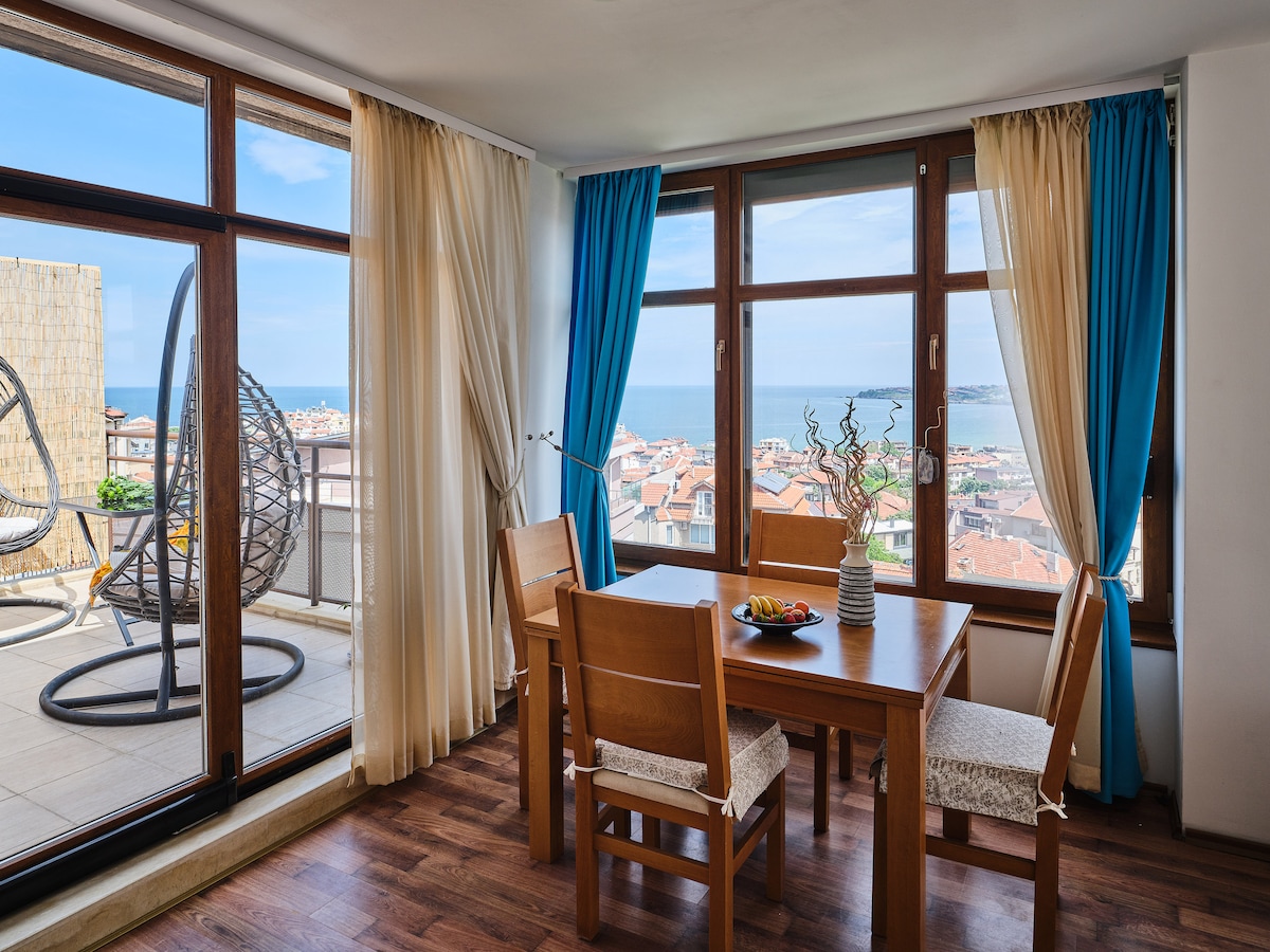 Charming Family-Friendly Penthouse. Experience Sozopol from our lovely two-floor penthouse with stunning sea views and a spacious terrace! Just a 6-minute walk to City Beach and the historic Old Town, this unique 125 sqm studio is designed for those who appreciate character. Discover traditional wooden houses, sandy beaches, and delightful cafes right nearby. Convenience of free 24/7 parking. Perfect for creating unforgettable family memories in Bulgaria's most picturesque coastal town.