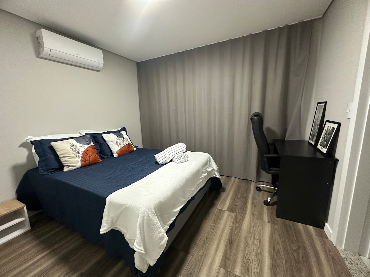 Super cozy and functional space in the center of Belo Horizonte. Designed with a modern style and the warm hospitality that only a home in Minas Gerais can offer! 🏠 Integrated space with: ➤ Queen-size bed with 300-thread-count sheets and a spacious, comfortable sofa bed. ➤ Air conditioning, total blackout curtains, and a spacious desk. ➤ Bathroom with hair dryer, practical and fully equipped kitchen, and washing machine. ➤ Electronic door lock, television, and Wi-Fi.