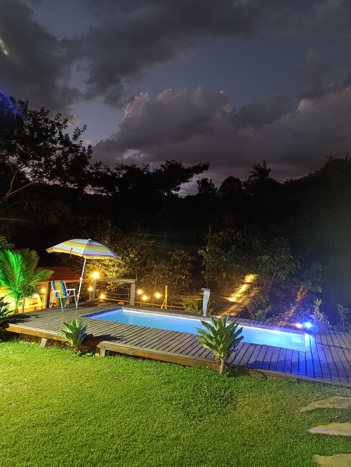 Sítio piscina aquecida, iluminada e hidromassagem.