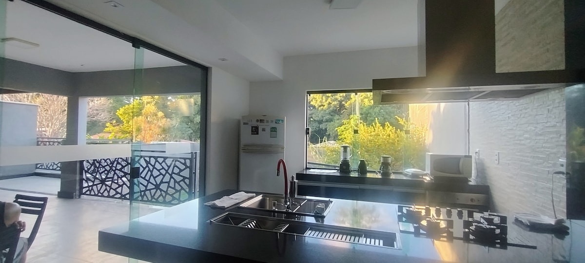Discover a bright house with straight-line architecture, designed to provide PRIVACY in every space. Surrounded by nature, enjoy breathtaking views of the mountains on one side and the picturesque Jaboticatubas on the other. The heated pool invites you to relax under the sun or at night under the stars. We are 62 km from Belo Horizonte, 30 km from Serra do Cipó, 18 km from São José da Serra, and 15 km from Cachoeira do Bené. Come and experience this unique getaway! No