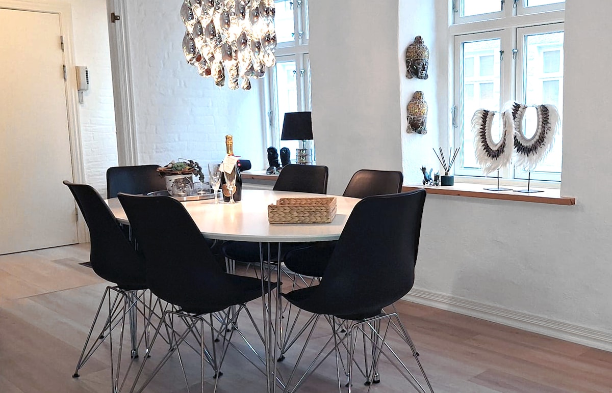 Læn dig tilbage, og slap af i denne rolige og stilfulde bolig. Men din store terrasse og udsigt til have. Lejligheden består af fordelingsgang med adgang til badeværelset og soveværelse med dobbeltseng. Fra soveværelset er der adgang til et soveværelse med enkelt seng. Stue og køkken er i et med adgang til terrasse og have hvor der er orangeri. Hjørnesofaen i stuen kan slået ud til en dobbeltseng. Der er p-plads på ejendommen.