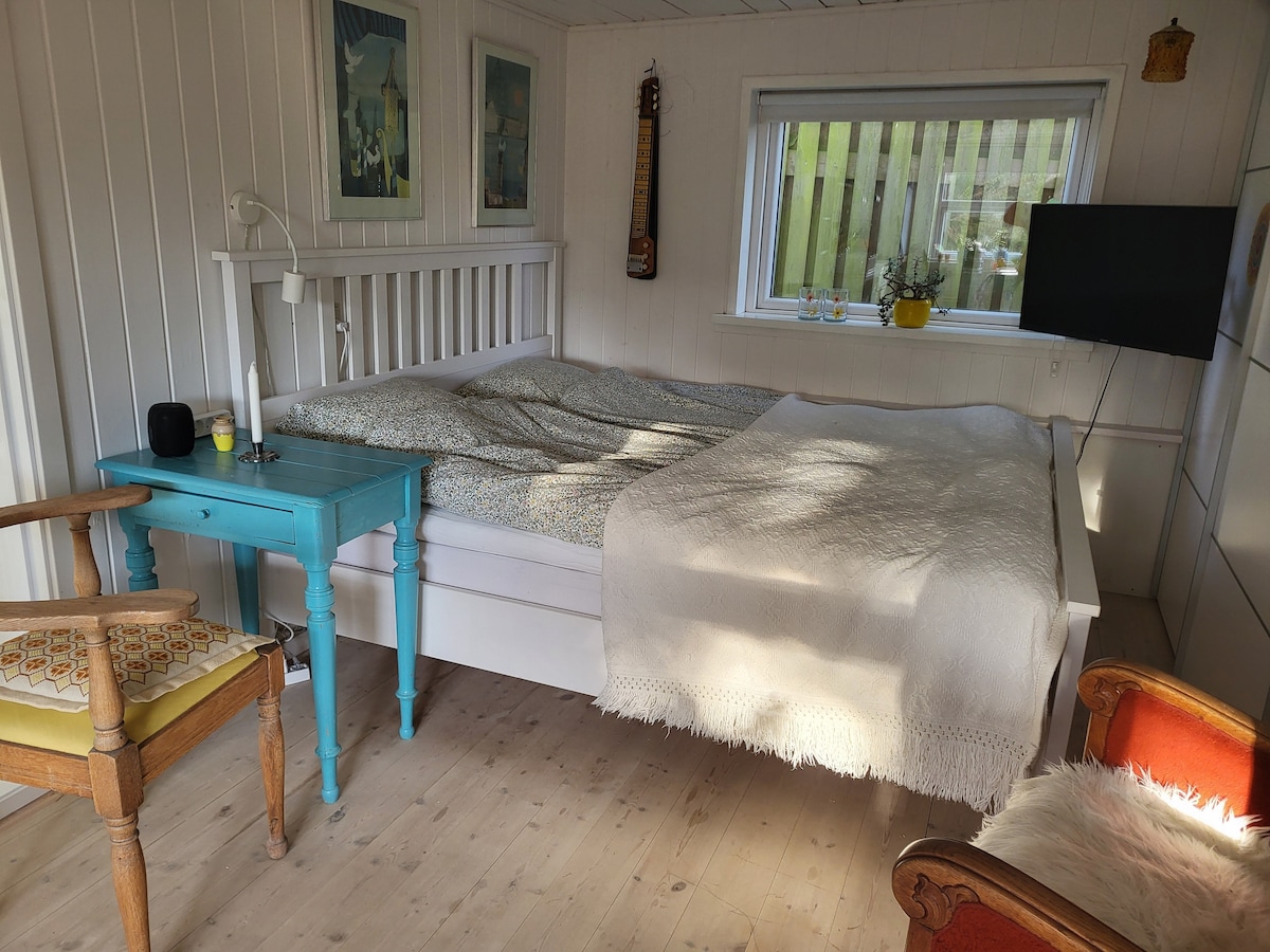 Et dejligt sted, til ro og fordybelse, med udsigt til Skjern Enge. Ligger også centralt til oplevelser i det vestjyske. Der er 2 rigtig gode boksmadrasser, som sikre en god nats søvn. Der er Sengelinned, håndklæder, viskestykke og karklud. Godt lille thekøkken, med 2 kogeplader og ovn, samt køleskab med lille fryser. Der er egen indgang og badeværelse med bruser.