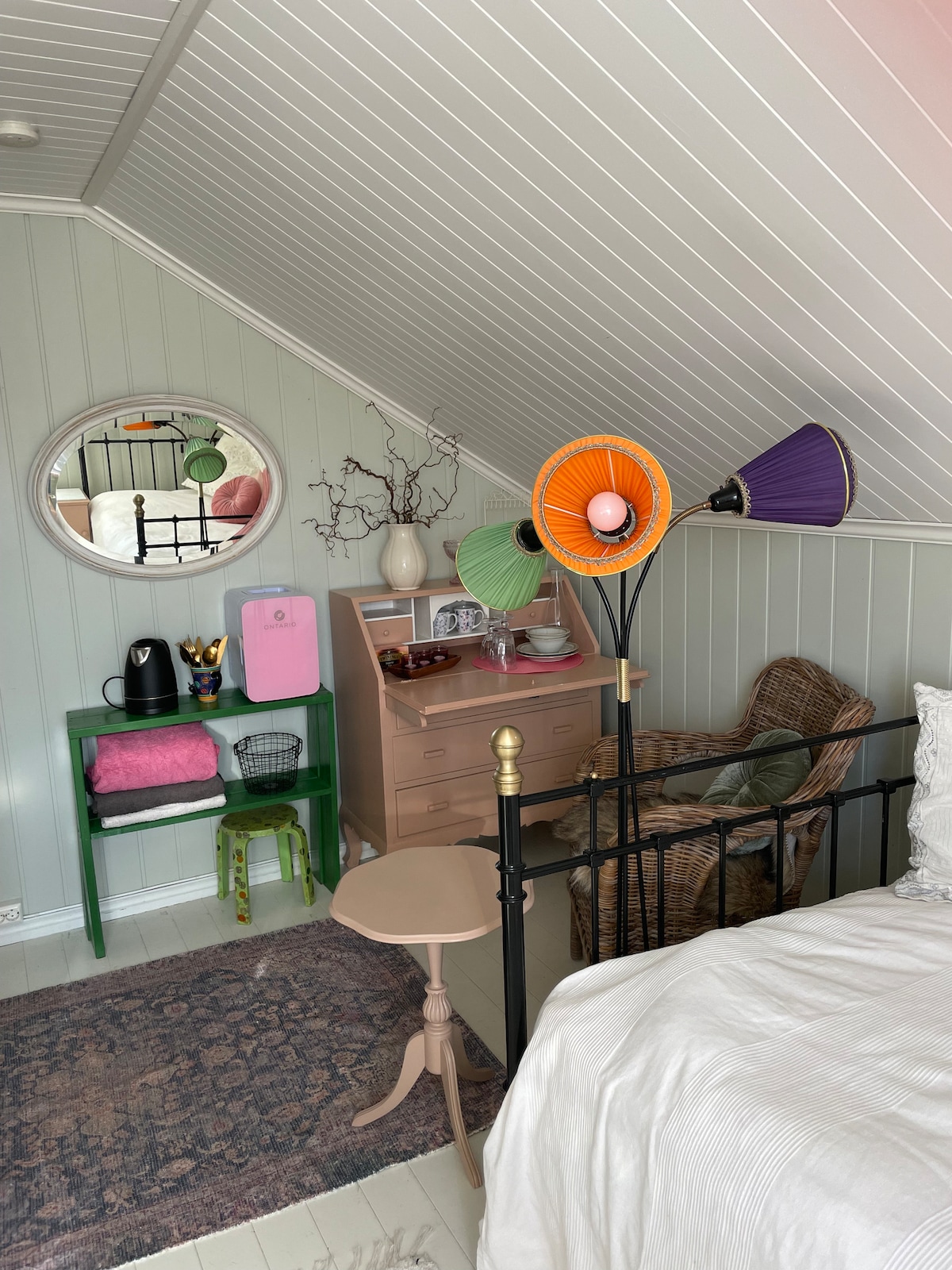 Velkommen til vårt hjem! Du leier et lyst rom med dobbeltseng og skrivebord, perfekt for både avslapning og litt jobb. Enkel frokost er inkludert. Du deler bad, kjøkken og stue med oss, og vi respekterer gjesters behov for både ro og selskap. Ute finner du en koselig sitteplass omgitt av en koselig hage. Huset ligger sentrumsnært, med kort vei til både butikker og kollektivtransport. Vi er et kreativt ektepar, en datter på 19 år og en corny svart katt som heter Aladdin. Vi ønsker deg velkommen!
