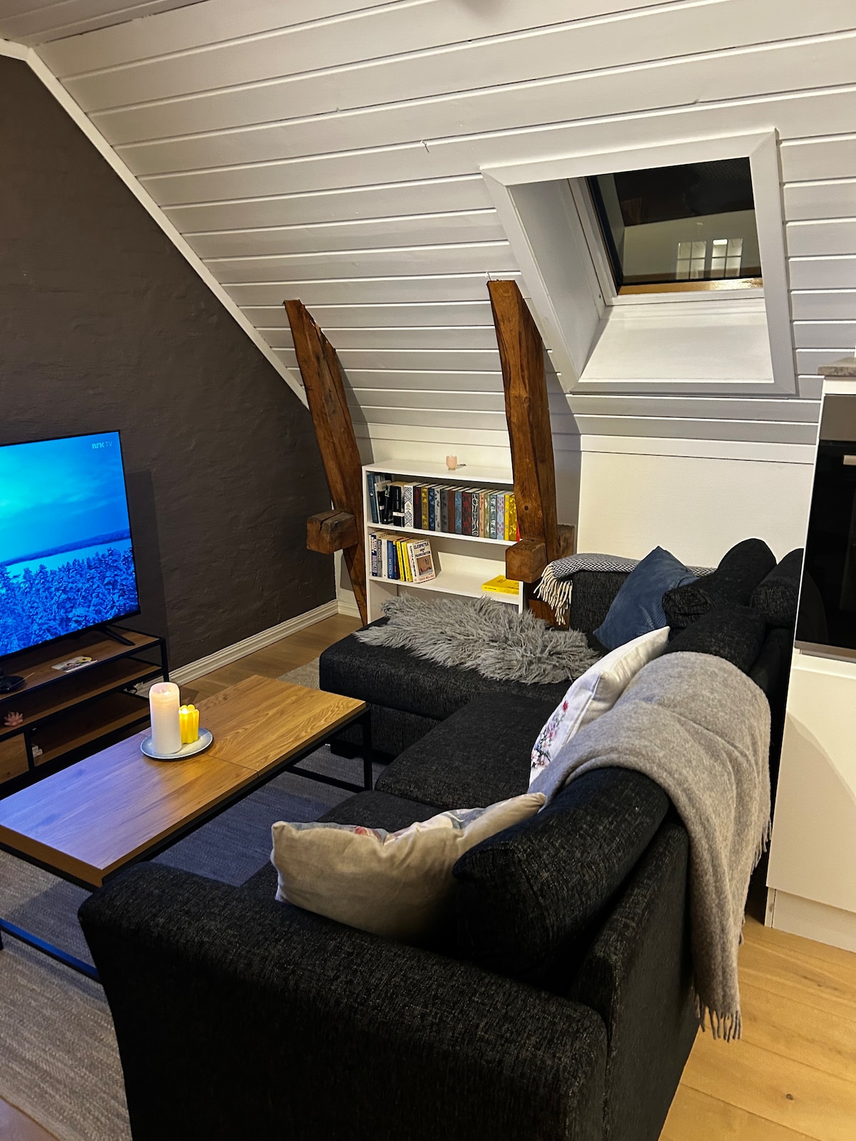 This apartment is centrally in Tønsberg center. In a charming part of town. It is a short way to everything! This is a delicious attic apartment with "the little extra". Here you live modern and comfortable in a new, easy-care apartment with a unique feel. The apartment is very charming, consistent and spacious with gorgeous details and a contemporary expression. Very area-efficient floor plan as well as large window areas that let in a lot of light.