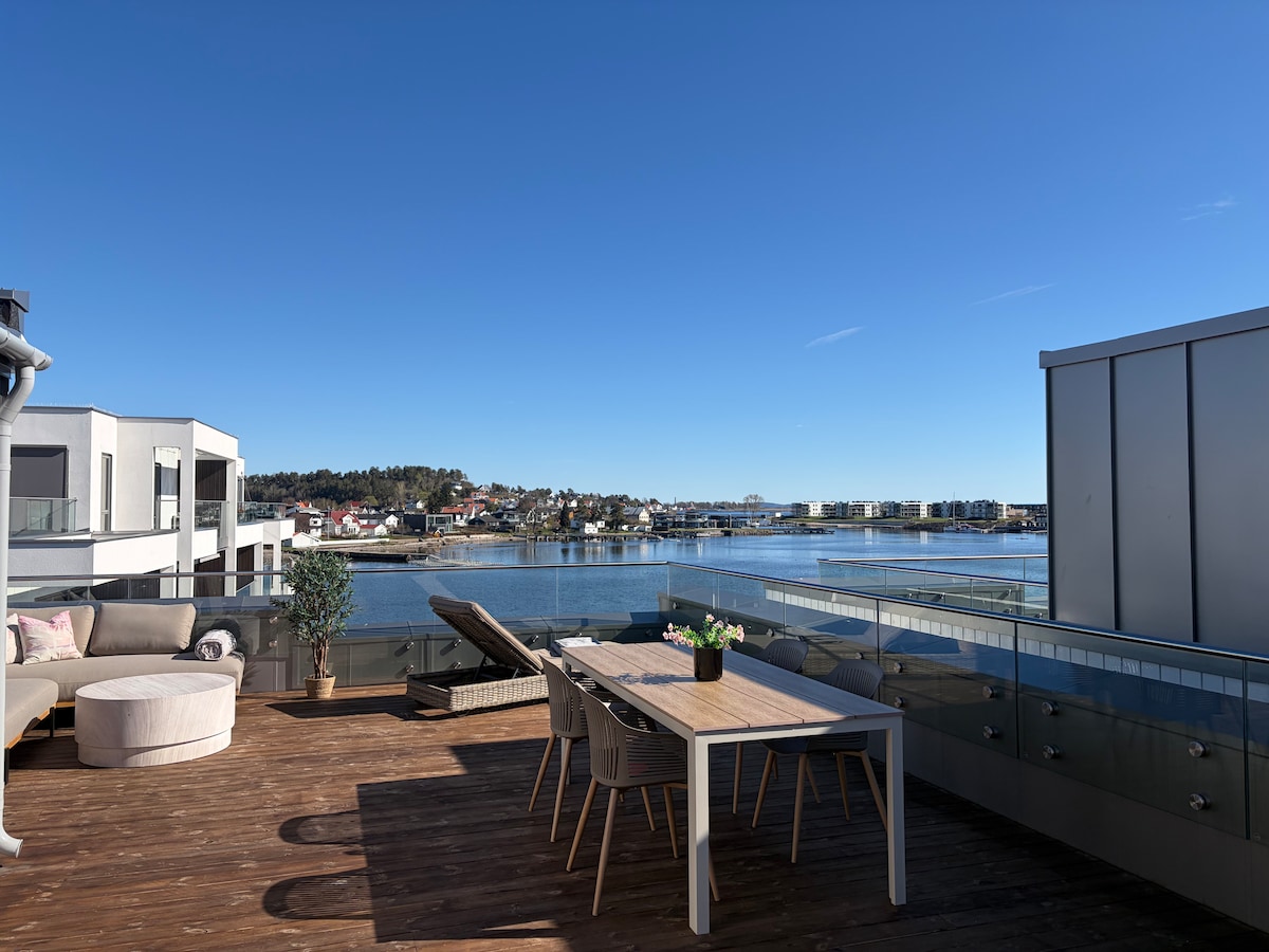 Modern apartment next to the city center of Moss, and 15 minutes walk from the train station. Restaurants, shops, art galleries, theatres, all you need, is only a 2-10 minutes walk from the apartment. And yet the view from the livingroom is a waterfall, and there is also a spa sauna in the area which floates in the sea. Bedroom with a queen size bed, a coxy living-room, a fully equipped kitchen and a bathroom with a washing machine and a tumble dryer. Playground for kids and a large terrace.