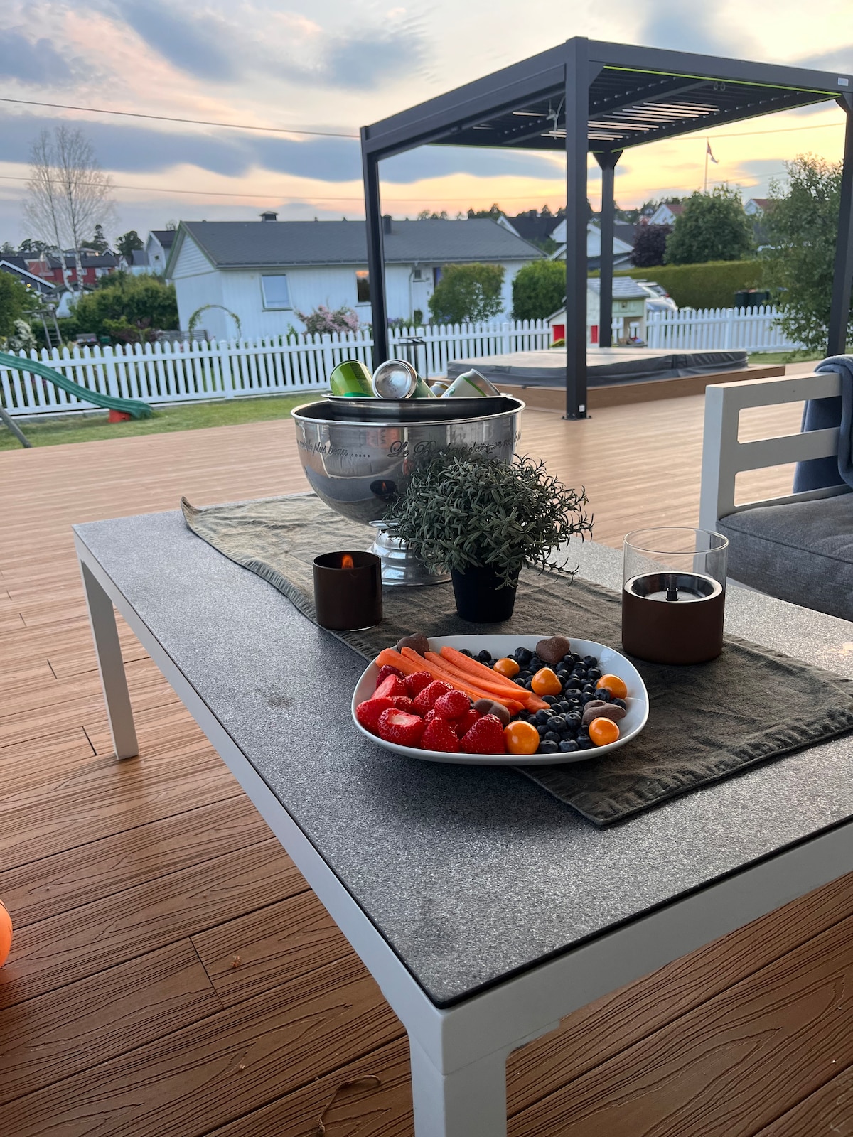 Lad batteriene på dette unike og private overnattingsstedet. Kanskje Tønsbergs flotteste plass? Her får du vestvendt panoramautsikt over hele Tønsberg og innseilingen til byen. Helt uforstyrret innerst i blindvei med skogen som nærmeste nabo. Hage på over 1,3 mål med mange uteplasser, jacuzzi og detaljer som du sjeldent har sett. Terrasse og spiseplasser inne og ute som kan nytes av hele gjengen. Her har du sol fra morgen til kveld og alt du trenger med Tønsberg by kun 3 km unna.