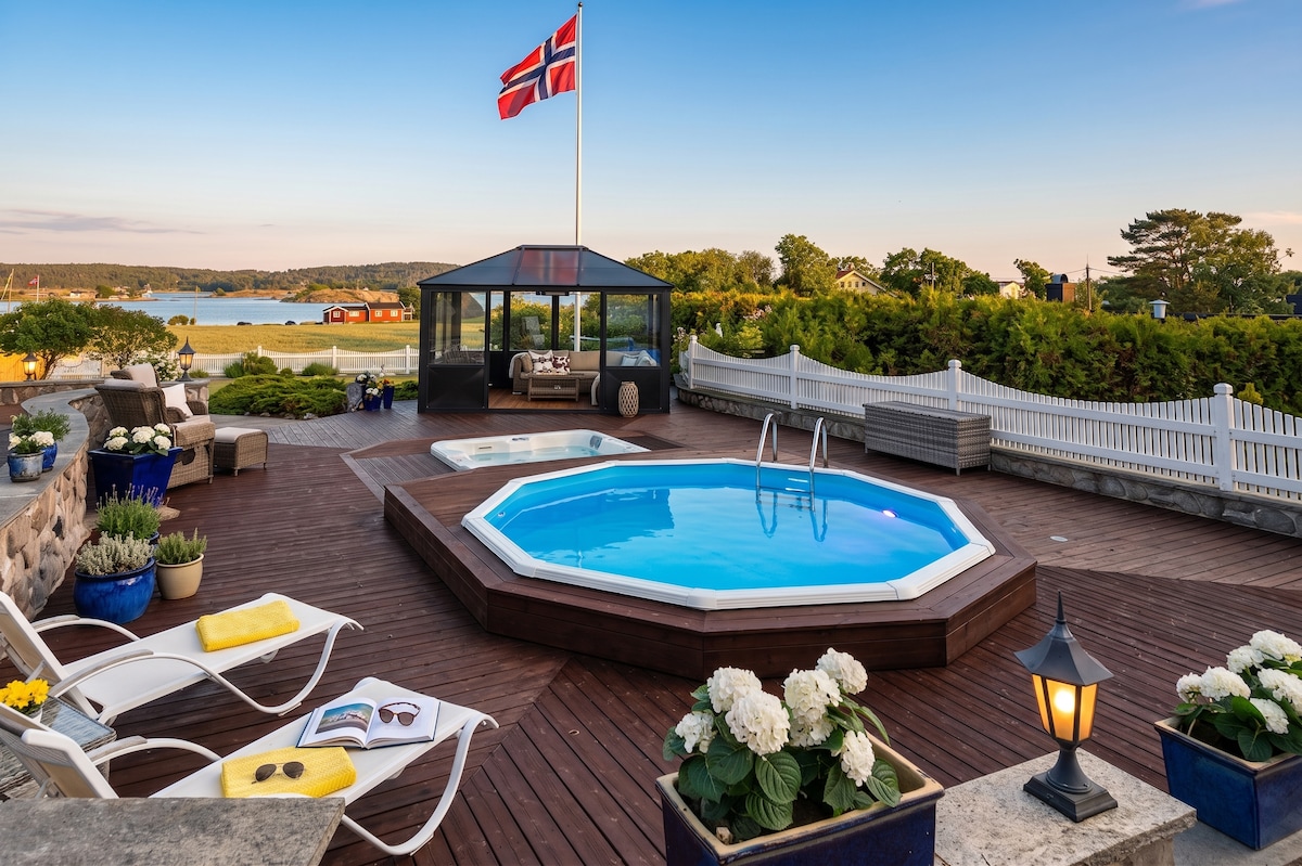 海边的绝佳房子。步行即可到达滕斯贝格( Tønsberg