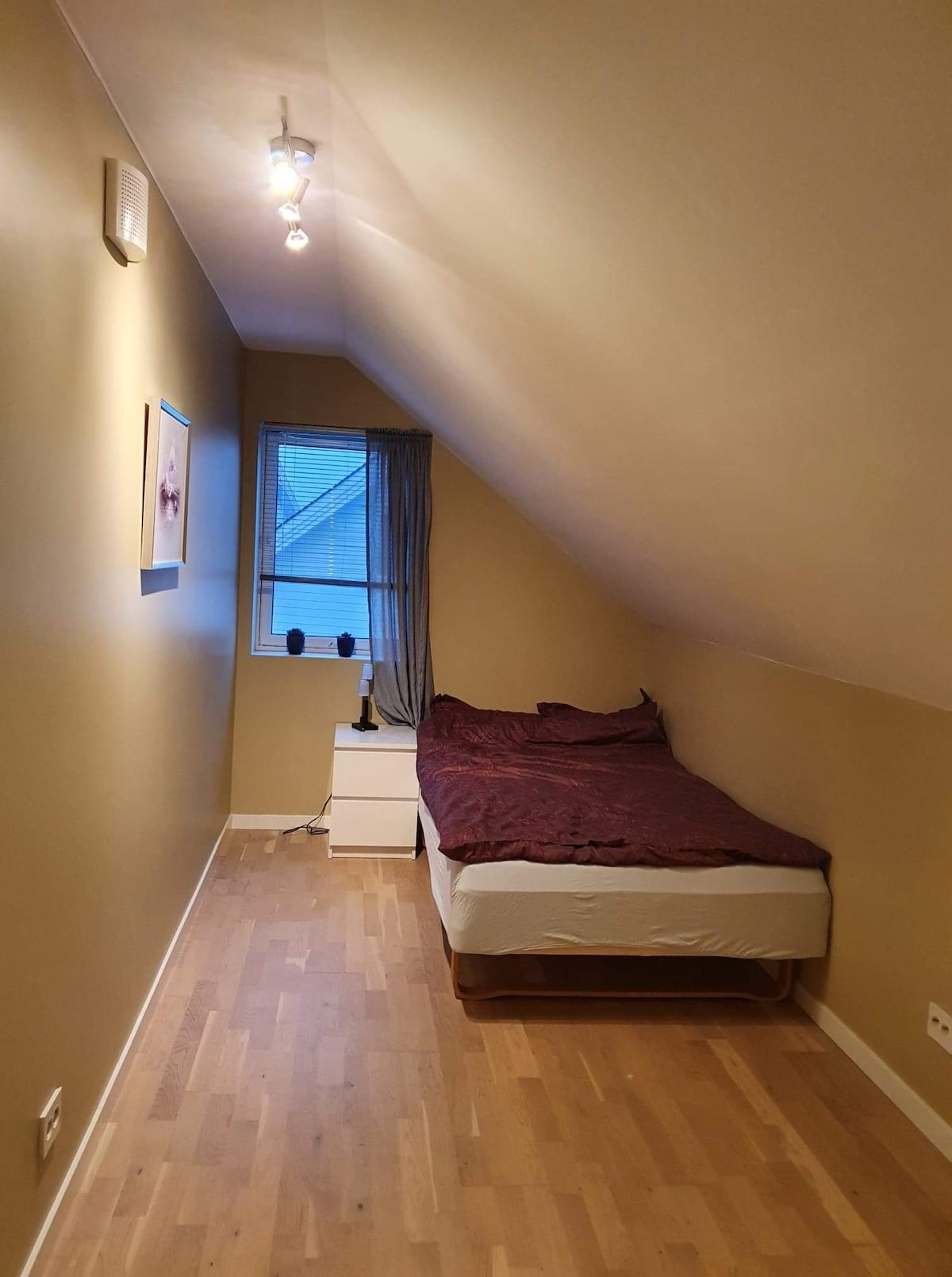 Koselig rom med bad. Rommet har egen inngang. God dobbelseng(150cm). Ekstraseng fås ved behov. «Kjøkkenkroken» har kjøleskap, mikroovn, vannkoker ++, te og kaffe. Kjøkkenkroken er i samme rom som seng og lenestoler. Badet er romslig, og har toalett, dusjkabinett og servant. Pga størrelsen er det best egnet til kortere opphold. Rommet er tilknyttet hovedhuset, så noe lyd må påregnes. Rolig nabolag. Inngang på siden av huset. Hagemøbler og gassgrill tilgjengelig. Håndklær og sengetøy er inkl.