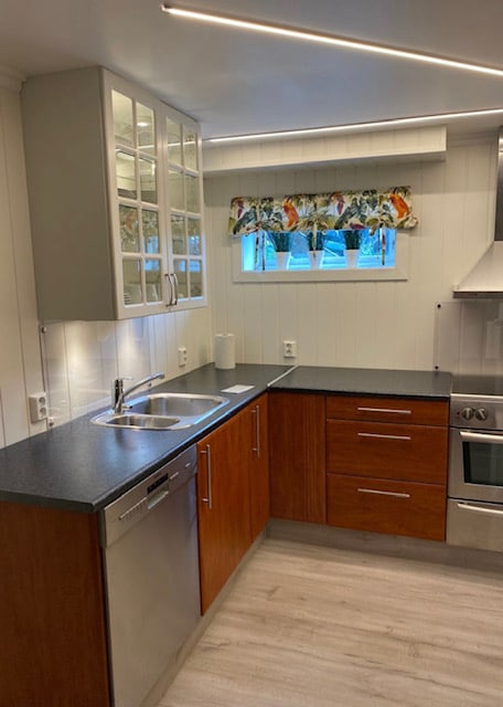 Leiligheten ligger i underetasjen av vårt hus med utsikt mot Sandefjord sentrum. En trapp må gåes for å komme dit. Den egner seg derfor ikke for gjester med gangbesvær. Leiligheten vender mot nord og har litt sol på morgen sommerstid. Nærhet til mange badestrender og friområder. Det er bussholdeplass 10 min å gå fra vårt hus. 30-40 min å gå til sentrum av Sandefjord med flere restauranter og butikker. Supermarket 10 min gange fra vårt hus. 2 min med bil. 15 min til Torp flyplass med bil.