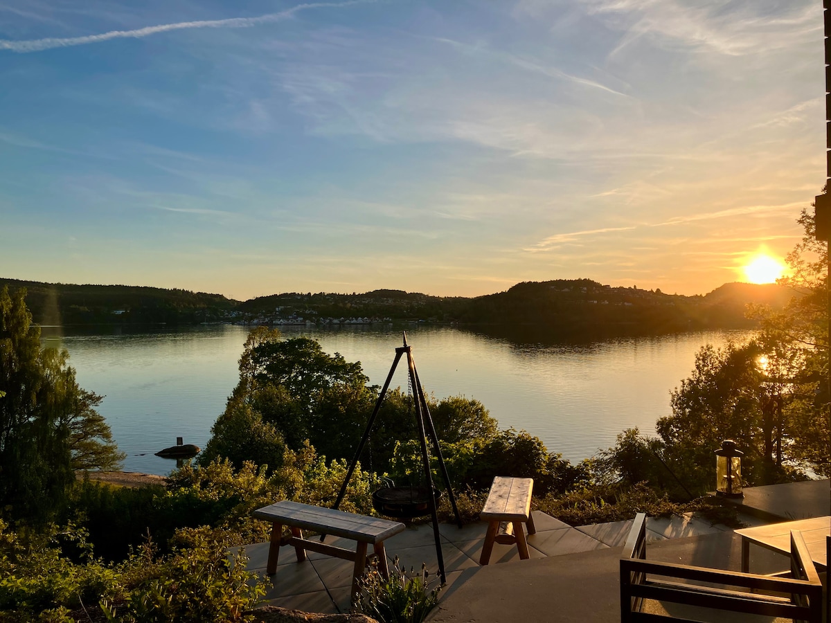 Unique country house with a stunning view of Tyrifjord in Norway. It is a calm cabin area for year-round use, located approximately 1 hour from Oslo center and 1.5 hours from Oslo Airport. Here you have immediate proximity to the wilderness, swimming, fishing and cross-country skiing. Enjoy beautiful sunrises, peace and quiet, and a scenic private sauna with breathtaking views. Sightseeing and restaurants in Oslo are nearby. The cottage is modern and fully equipped with top facilities.