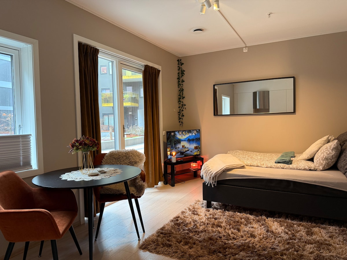 Welcome to your home away from home - a bright and cozy apartment located in the heart of Oslo! Just steps away from Oslo Bus Terminal and the Airport train. This space is ideal for couples, small families, or friends. It features one comfortable bedroom and a quality sleeping couch in the living room - perfect for up to 4 guests. You’ll be within 5 to 10 minute walk from top attractions like the Oslo Opera House, Bjørvika, Barcode, Munch Museum, and shopping and dining spots.