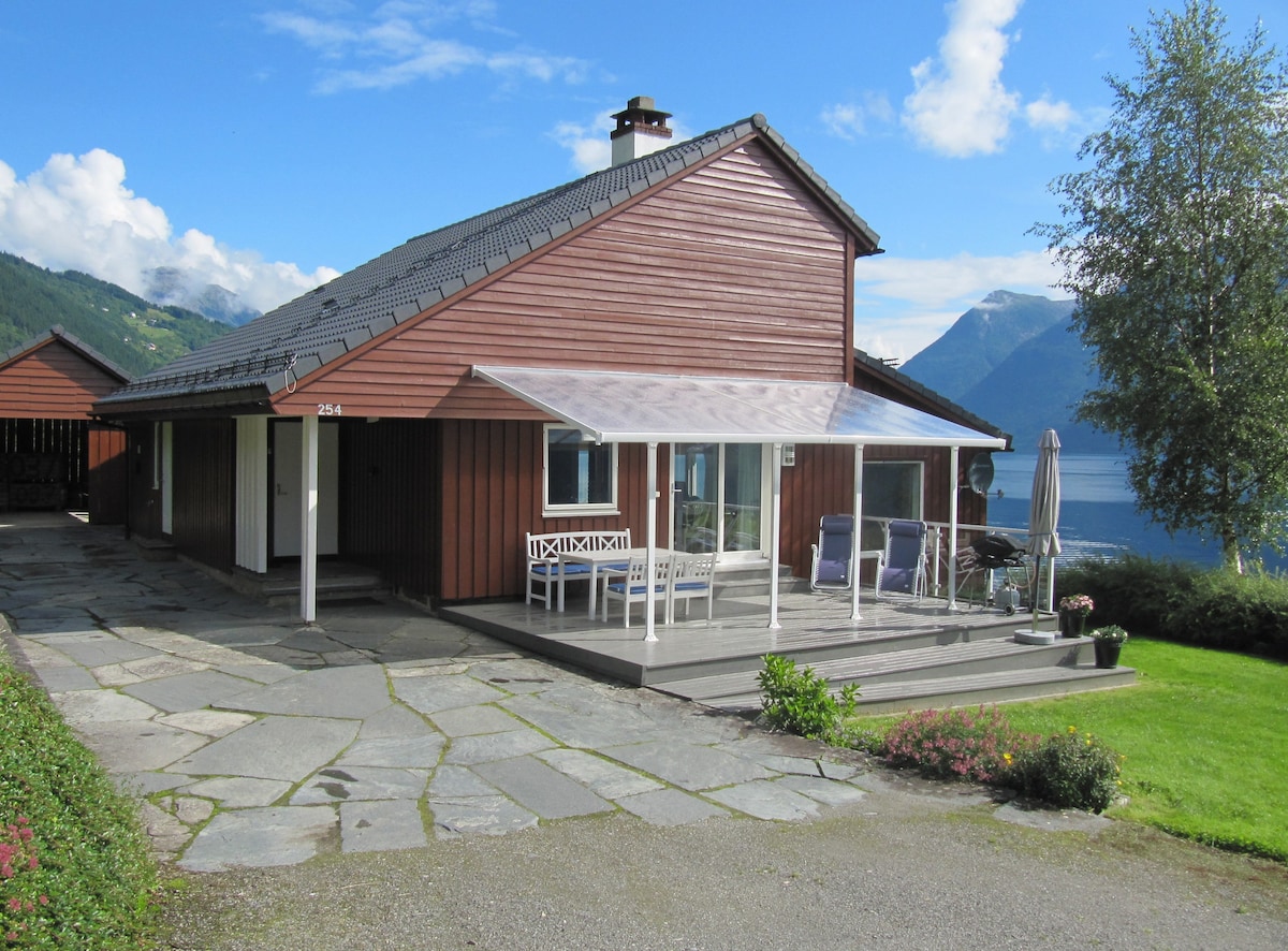 Velkomen til dette vakre huset frå 1930-talet. Her har min grandonkel budd og seinare nytta tanta mi det som sommarhus fram til ho vart 99 år gammal. Det er mykje historie i veggane. - Welcome to Ringøy! Relax at this peaceful place surrounded by mountains and fjords. 10km from Kinsarvik. A spacious outdoor area, a cozy living room, kitchen and two bed rooms. Bed linen and towels included. We recommend The Queens Trail, the Husedalen valley, the Vøringsfossen waterfall and hiking Oksen.