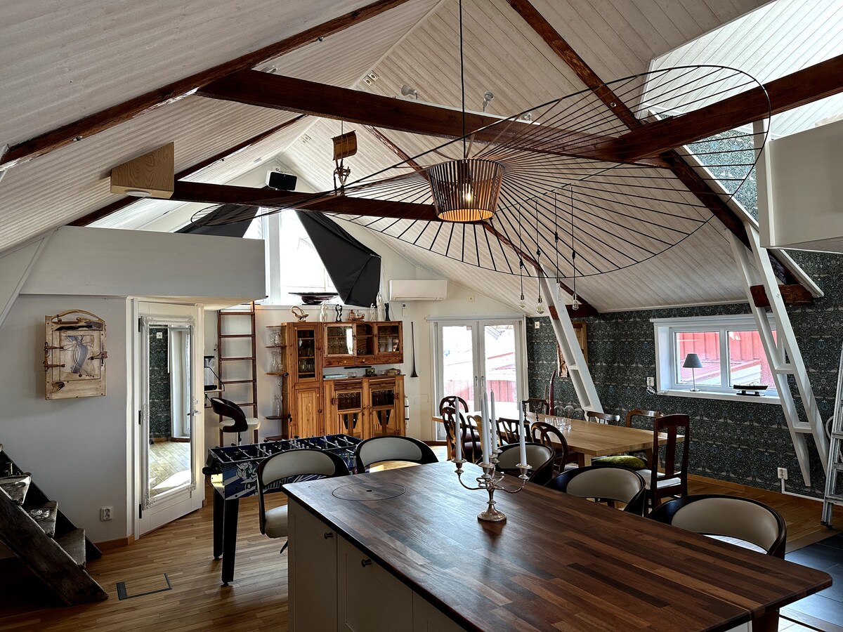 Part of a lakeside house, with no shared facilities. 85 sqm space plus terrace. Large kitchen/dining room, and bathroom on the lower ground floor. Own terrace outside the kitchen with lake views & access to garden & lake. Loft living room with lake views and covered balcony, along with two large loft bedrooms. Activities: Swimming, great walking area, boating & fishing on the lake. 30 min to Kristiansand & Mandal 15 min to best salmon river in South Norway. Can accommodate up to 6 guests.