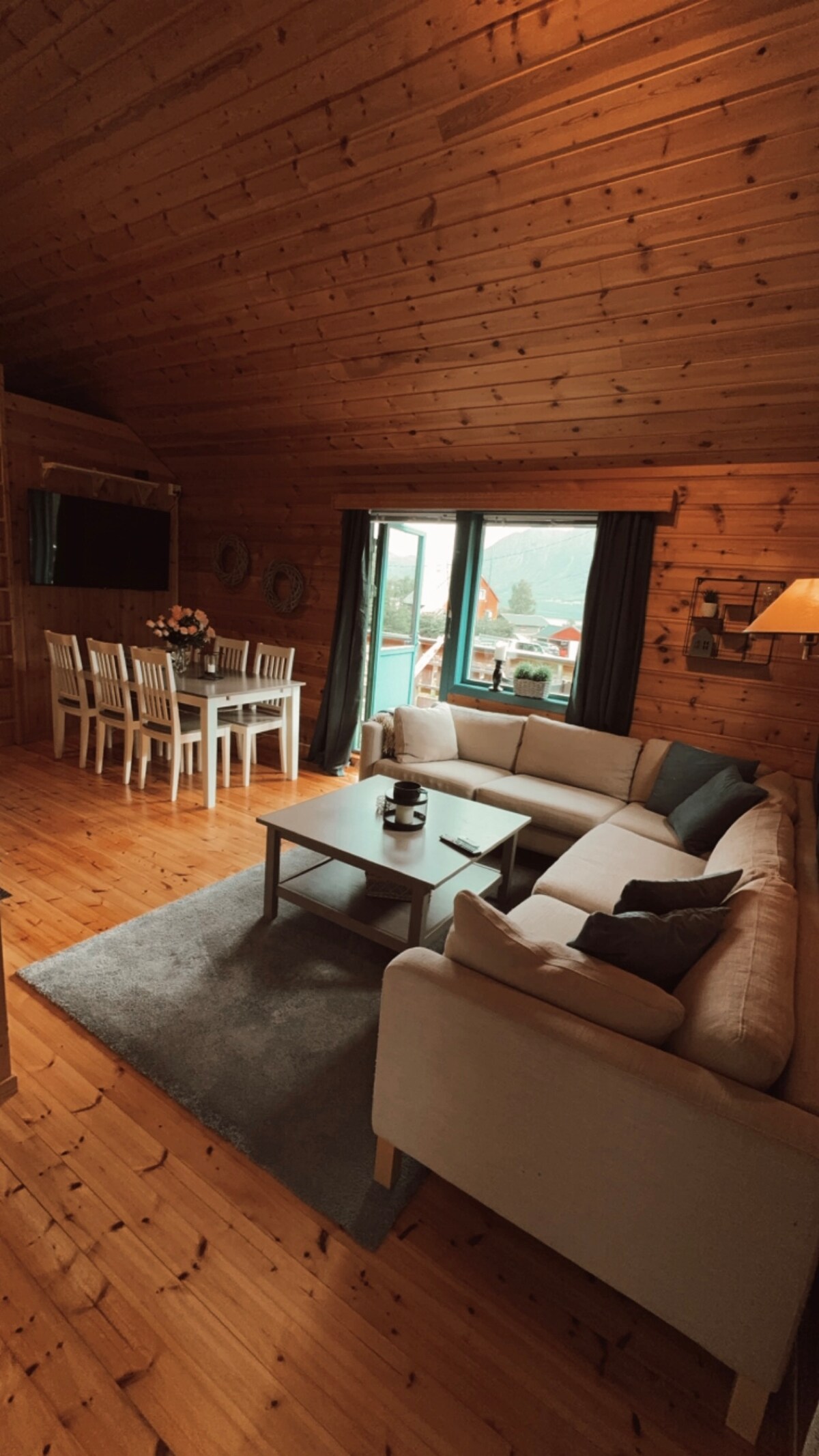 Tømmerhuset er totalrenovert i 2019 med nytt bad og kjøkken! Rommene er romslige og koselige med dobbel eller enkeltsenger. Innredningen er mix av gammelt og nytt, som skaper en hyggelig og komfortabel atmosfære. Hytten ligger i naturskjønne omgivelser, med tur muligheter rett utenfor døren sommer som vinter! Bading i fjellvann eller fjorden, fiske, nydelig friidrettsbane/hall! Stedet kan tilby attraksjoner som Trollstigen, Romsdaleggen , Via Ferrata i Åndalsnes, vakker fergetur til Molde.