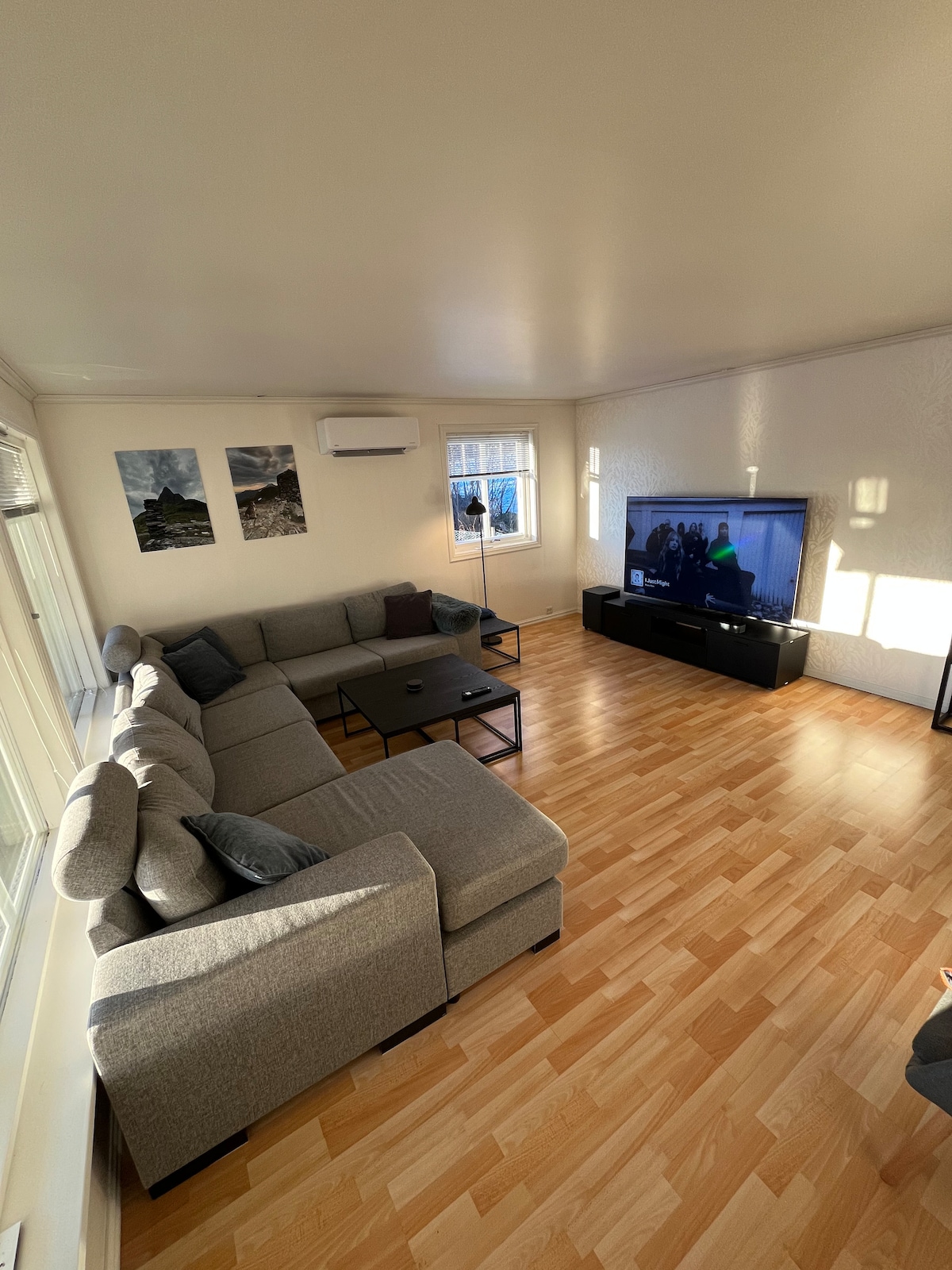 Velkommen til min nydelige leilighet! Her har dere muligheten til å bo i et fint nabolag i utkanten av Ålesund. Leiligheten inneholder alt av nødvendig utstyr og har høy standard. Her skal det være komfortabelt å bo så alle gjester kommer til ferdig oppredde senger og håndklær blir lagt frem. Leiligheten har et godt utstyrt kjøkken, romslig stue med 55" TV, et pent bad og balkong med sittegruppe. Hovedsoverom har dobbeltseng og 55" TV og gjesterommet har 2 enkle senger.