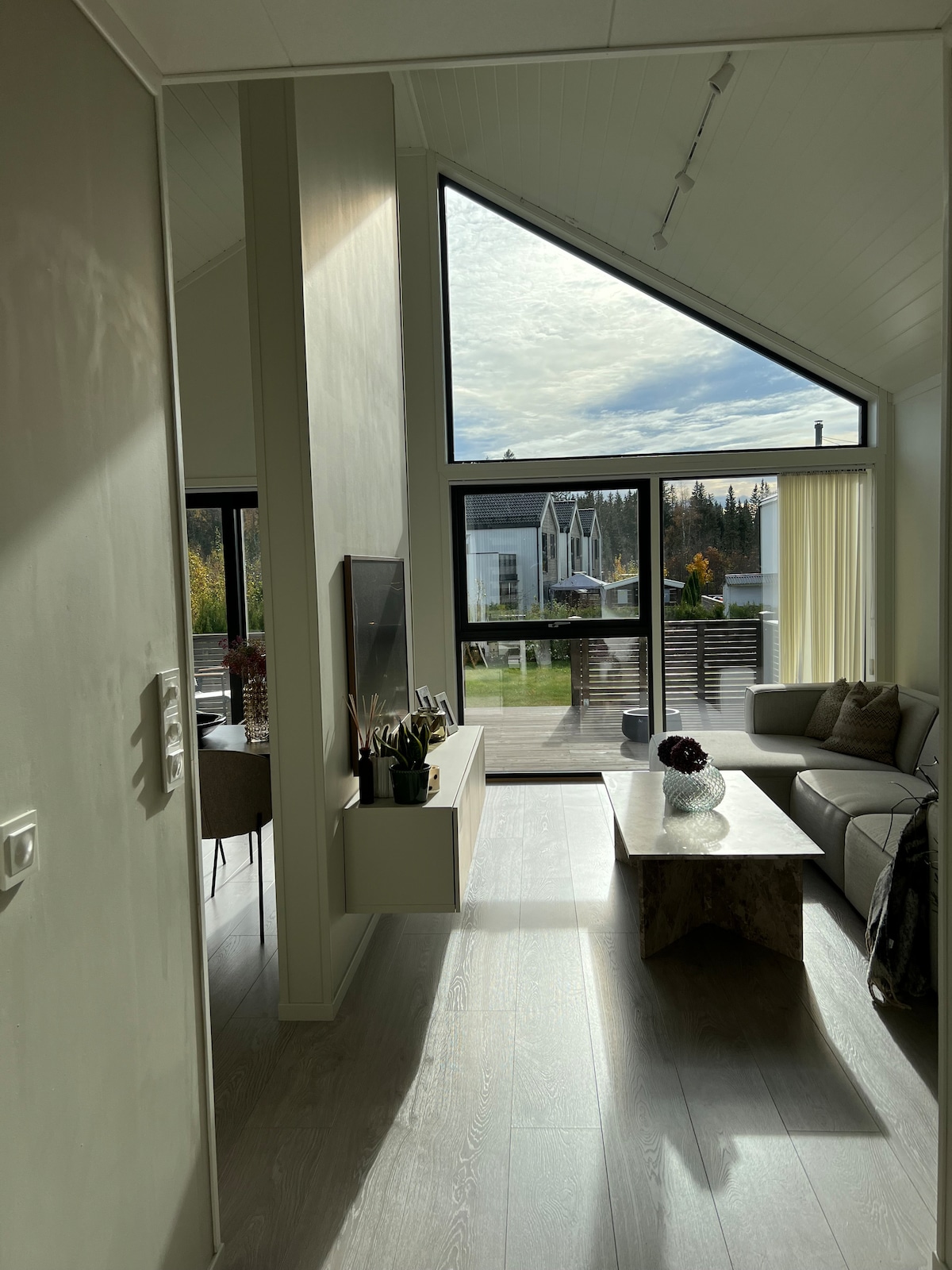 Lys og moderne leilighet i 1. etasje av en tomannsbolig. Leiligheten har to soverom, en med dobbeltseng og en med tilgang til dobbel luftmadrass, stue- og kjøkkenløsning med romslig sofa, peisovn og fullt utstyrt kjøkken. Store vinduer slipper inn mye dagslys, og lune detaljer skaper en varm og avslappende atmosfære – perfekt for både koselige kvelder og hyggelige måltider. I nærområdet finner du flotte turstier og skispor rett utenfor døren, samt Raufoss Badeland og Lekeland for hele familien.