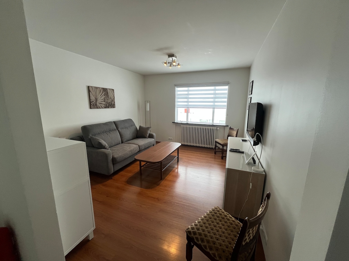 The studio apartment is in the garage next to a one story house with a private entrance. It has a double bed of 160 cm, a kitchen and a bathroom. The apartment is all newly renovated and all furniture are new.