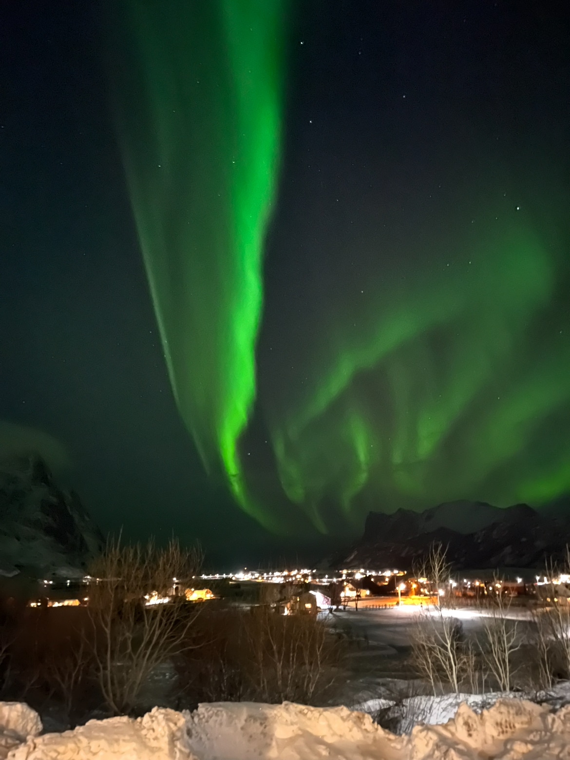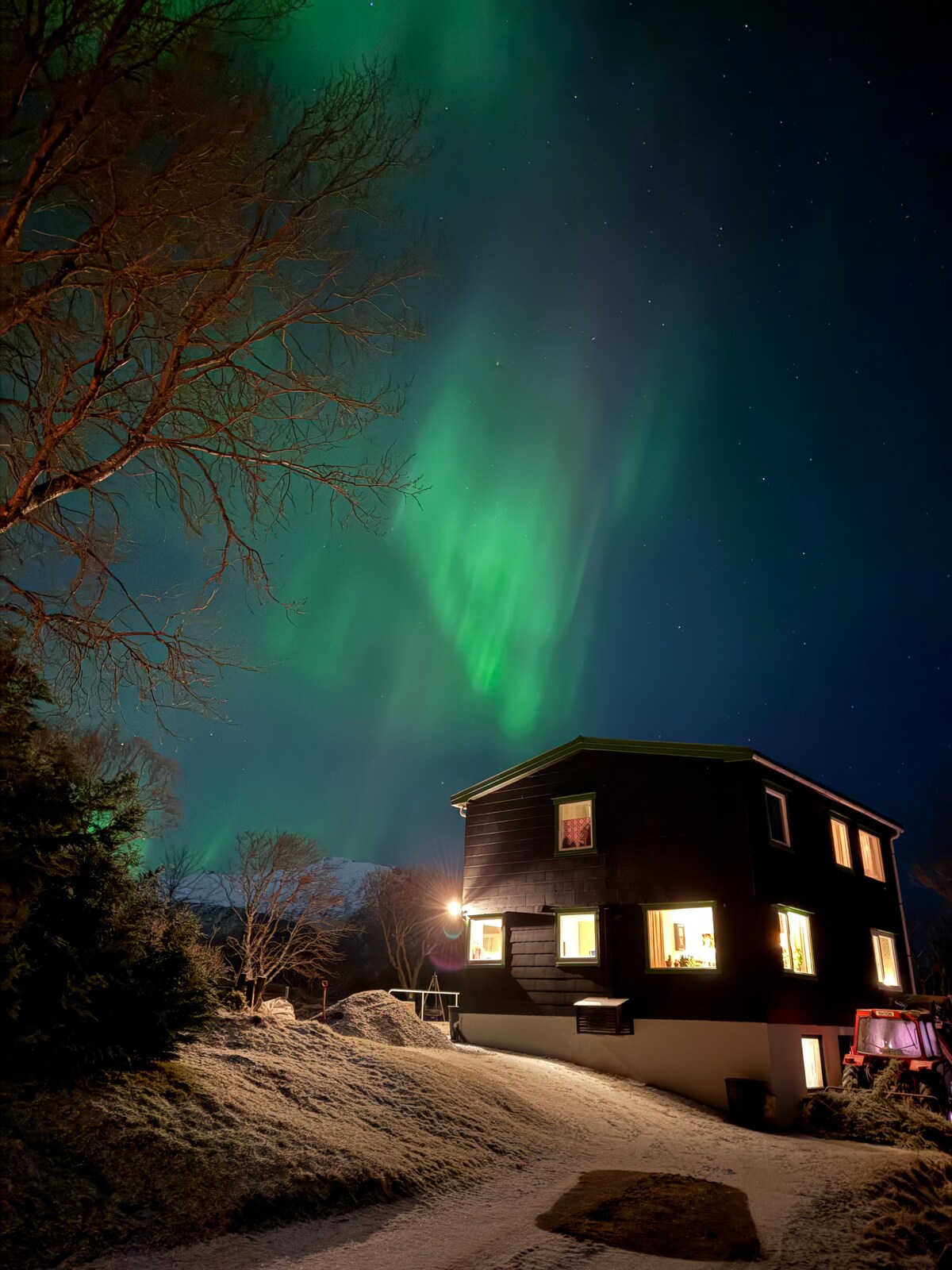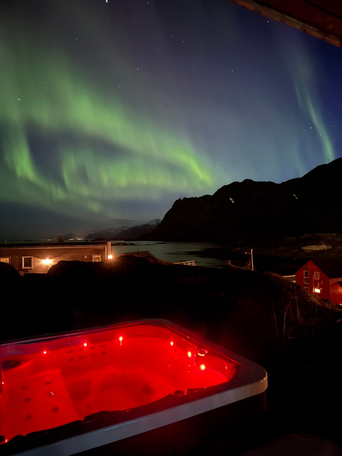 Positioned in the heart of the Lofoten Islands, our cozy home offers an unparalleled vantage point for photographers and nature lovers alike. With possibilities of capturing the northern lights right outside our window our home is great for Aurora Hunters. Located between Flakstadøya and Moskenesøya it offers endless opportunities for nearby outdoor adventures such as hiking trails, fishing and watersports like kayaking or paddleboarding. Hot tub availability weather dependent.