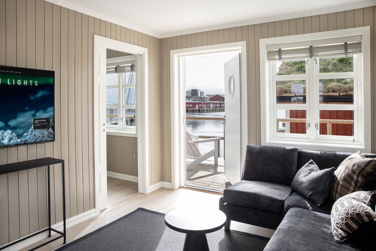 罗弗敦小木屋,独特海景和按摩浴缸