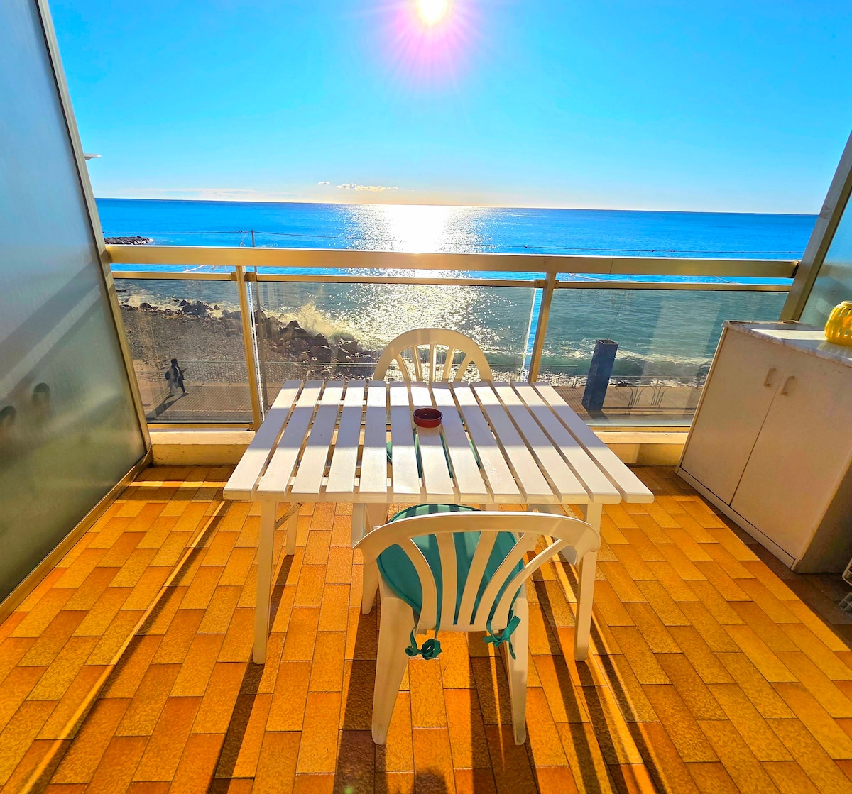 Situated in the heart of the old town of Nice, the apartment has stunning panoramic sea views from the balcony and is directly opposite the beach. Located in the "Ponchettes" it dates back to the 18th century but has been tastefully upgraded. Please note the configuration of the apartment does not allow the hosting of people with reduced mobility.