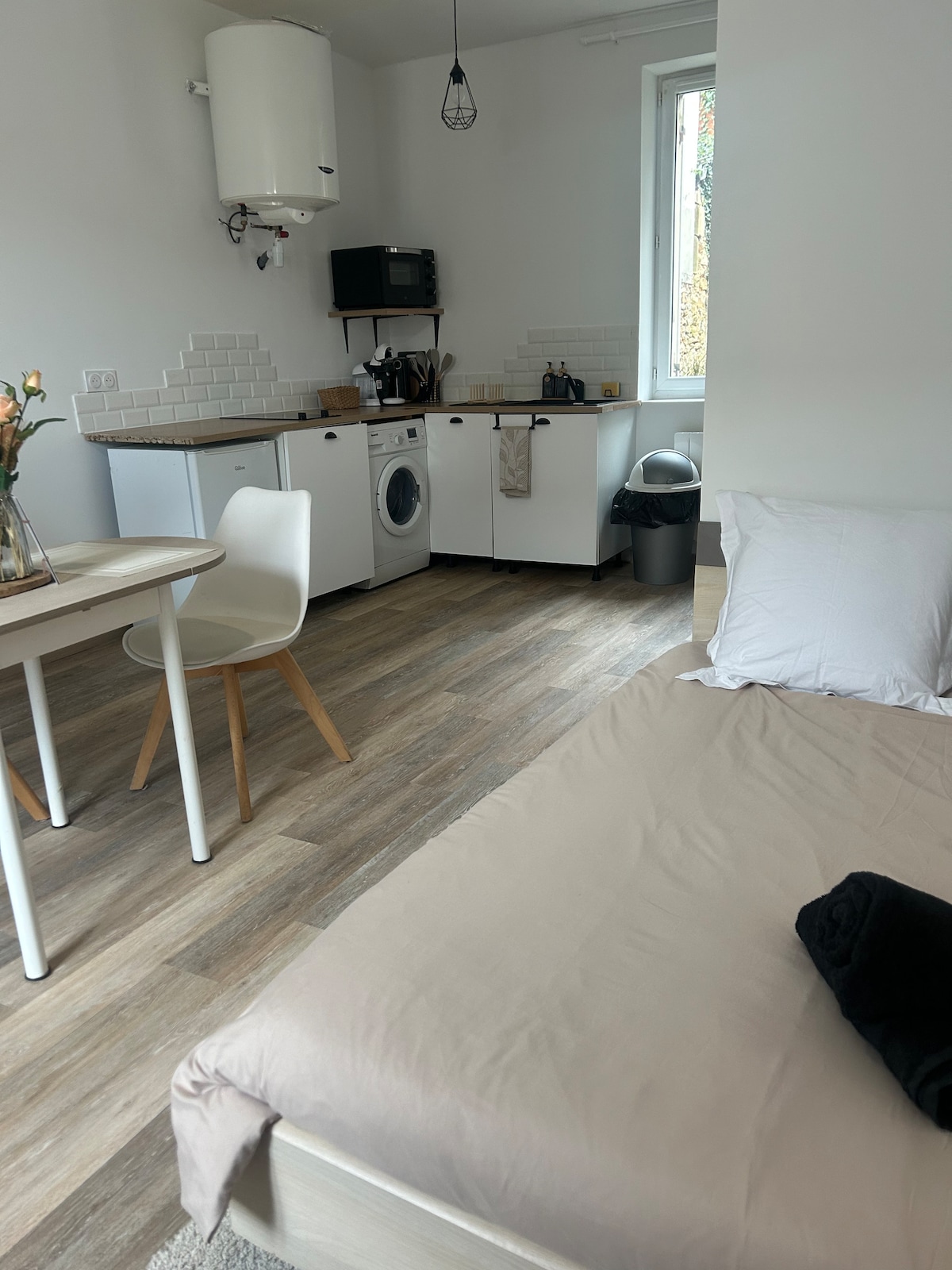 Studio entièrement rénové et parfaitement équipé, idéal pour un séjour confortable au cœur de Périgueux. Situé dans un petit immeuble calme, juste en face de la gare, il est à quelques pas du centre-ville et de ses attractions. Linge de maison fourni, wifi gratuit, stationnement facile autour de l’immeuble. Que vous veniez pour une escapade romantique, un séjour professionnel ou simplement découvrir les trésors du Périgord, ce studio est l’endroit idéal pour poser vos valises.