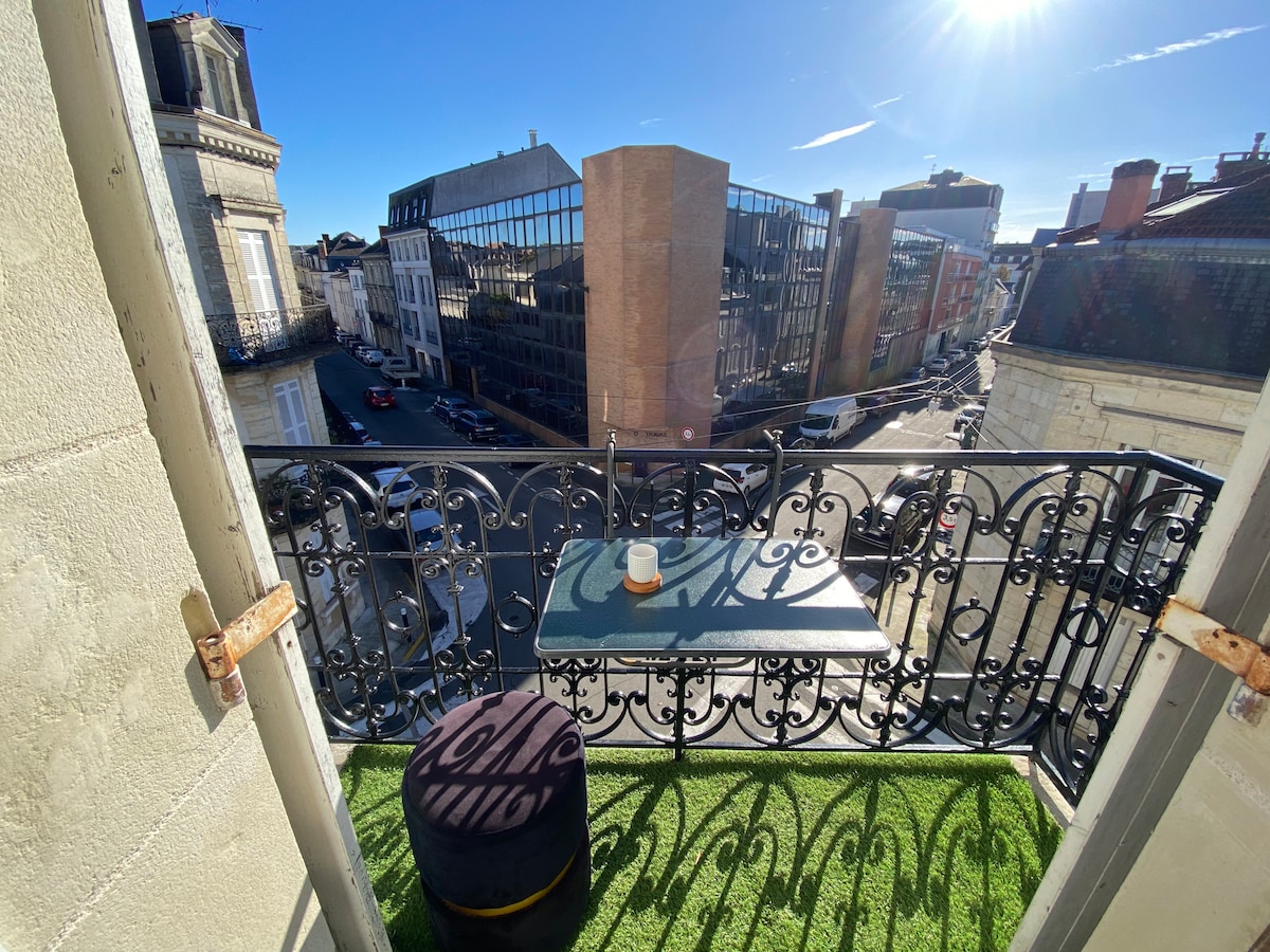 Charmant appartement en plein cœur de la ville, idéal pour accueillir jusqu'à 3 personnes ! Niché au cœur du Perigueux historique, cet espace offre le confort d'un lit douillet ainsi que d'un canapé-lit. L'appartement se distingue par son grand balcon en plein centre-ville, où vous pourrez vous détendre et profiter de votre café du matin ou d'un verre en soirée tout en admirant la vue. Décoré avec goût, cet espace vous séduira par son ambiance chaleureuse et ses touches décoratives.