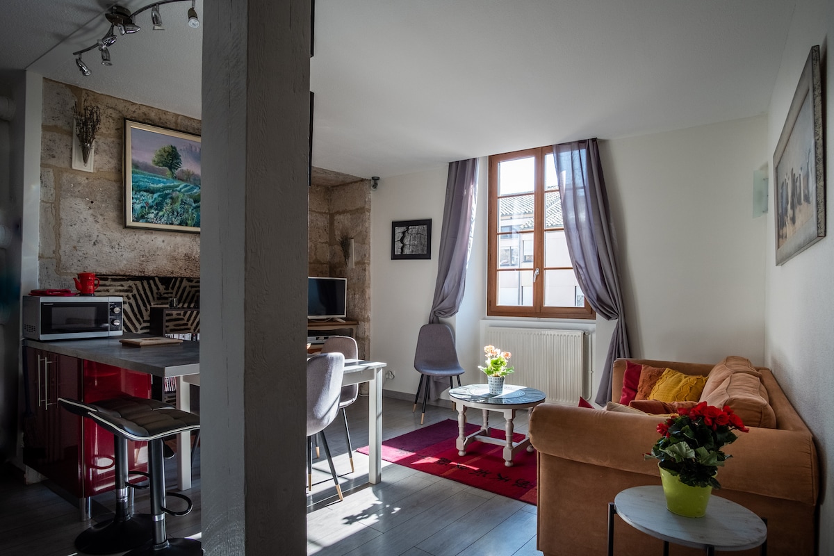Charmant appartement en plein cœur de la ville, idéal pour accueillir jusqu'à 3 personnes ! Niché au cœur du Perigueux historique, cet espace offre le confort d'un lit douillet ainsi que d'un canapé-lit. L'appartement se distingue par son grand balcon en plein centre-ville, où vous pourrez vous détendre et profiter de votre café du matin ou d'un verre en soirée tout en admirant la vue. Décoré avec goût, cet espace vous séduira par son ambiance chaleureuse et ses touches décoratives.