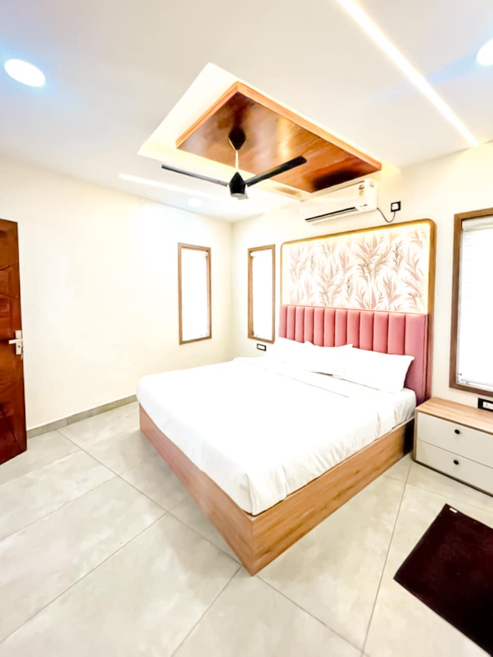 Central A/C Premium apartment with 5bedrooms (1King+ 4Queen-all orthopedic mattresses), all attached bathrooms •Living space with 56" google TV, FREE WIFI, 8 seat dine. •Kitchen with- 4 hob electric cook top, hood, grill, microwave, fridge, rice cooker, kettle, toaster, blender, cooking and serving utensils, dish washer, breakfast table with 2 seats. *COMPLEMENTARY TEA/COFFEE/MILK & BISCUITS. DON'TS • NO SMOKING • NO MASALA COOKING • STRICTLY 10 GUESTS MAX