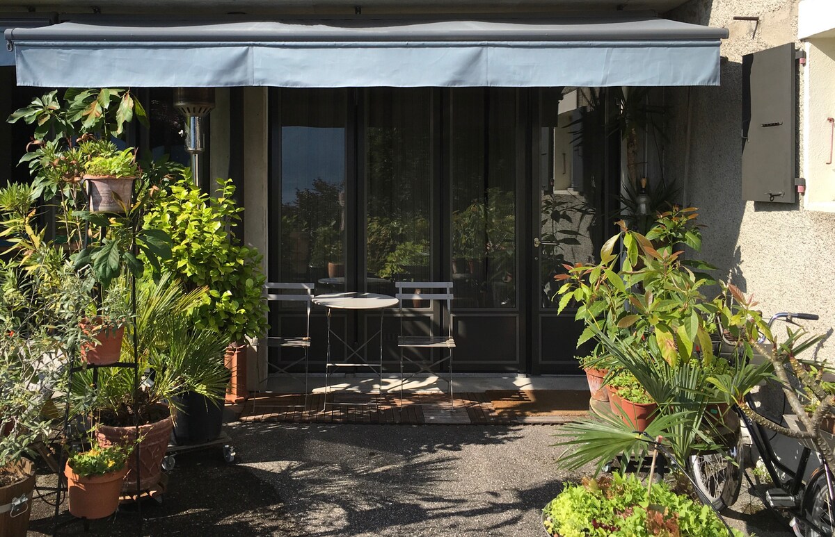 Ce logement vraiment paisible offre un séjour détente pour toute la famille dans un endroit très calme. Situé dans la campagne, proche d'une ferme, il vous offre la possibilité de rencontrer les alpagas et les autres animaux de la ferme. Le balcon et le jardin ombragé sont exposés plein Sud. La vue est dégagée, vous pouvez profiter du coucher de soleil sur le Jura. Il y a beaucoup de possibilités de balades à pieds ou à vélo dans la région.