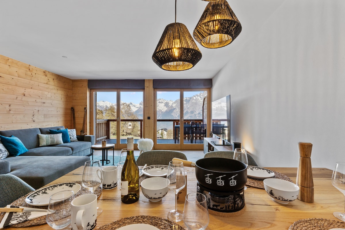 Chez « Adèle », un nid douillet au cœur du Valais, à Luc (Ayent) Le charme d’un chalet situé sur la rive droite du Rhône, à 1000 mètres d’altitude, où le panorama se déploie sur les magnifiques Alpes valaisannes. Matériaux nobles, objets d’antan revisités, aménagement raffiné et atmosphère chaleureuse : votre séjour chez « Adèle » restera gravé dans votre mémoire.